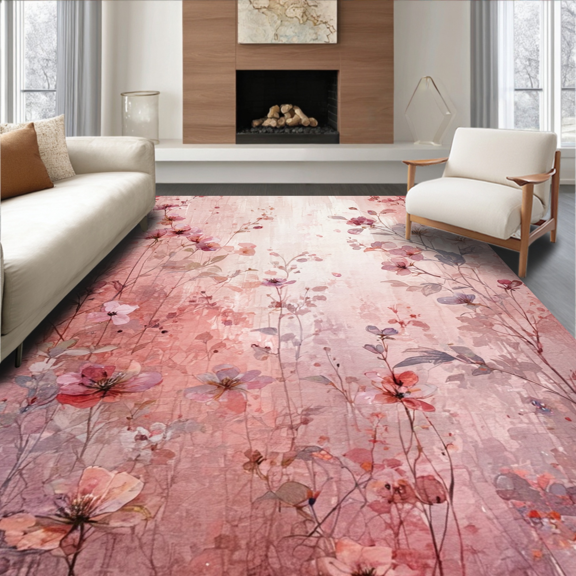Soft Blush Floral Ethereal Rug