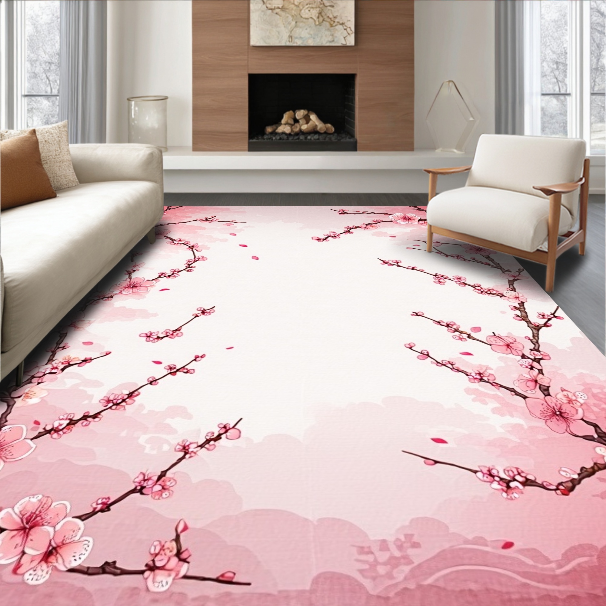 Soft Pink Cherry Blossom Serene Rug