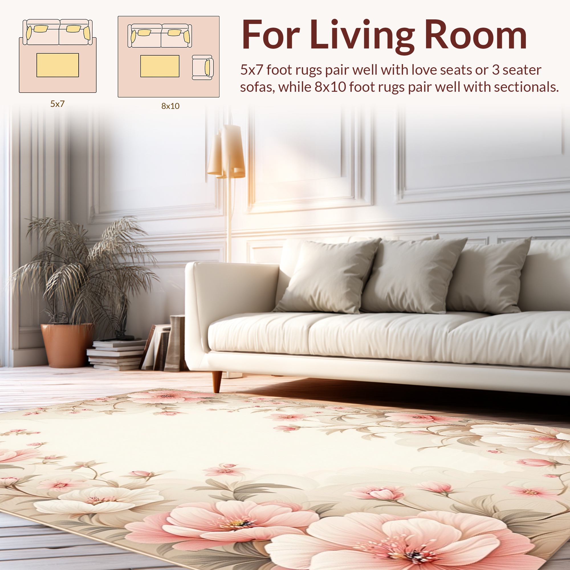 Soft Pink Floral Elegant Rug