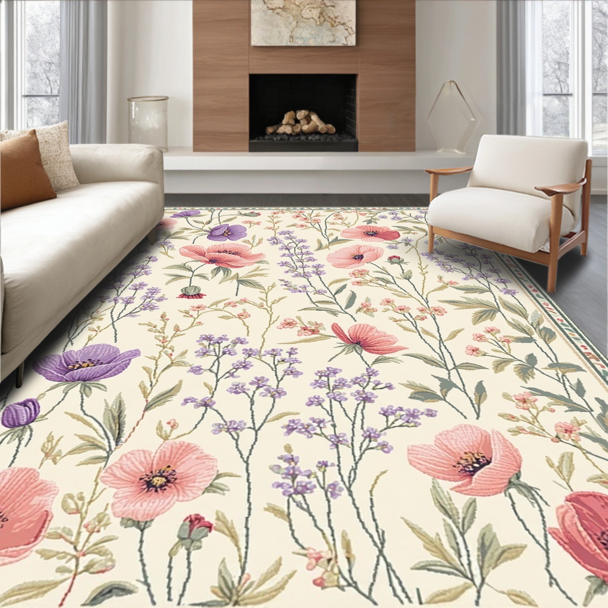 Soft Pink Purple Floral Romantic Rug