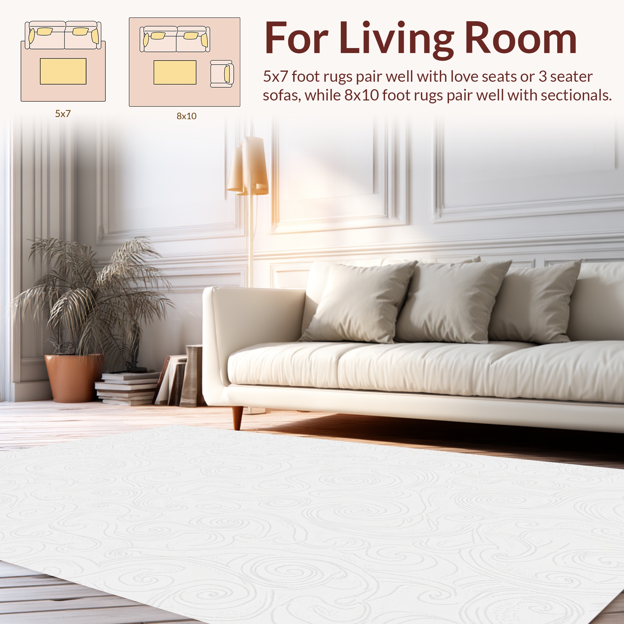 Soft White Swirled Serene Rug