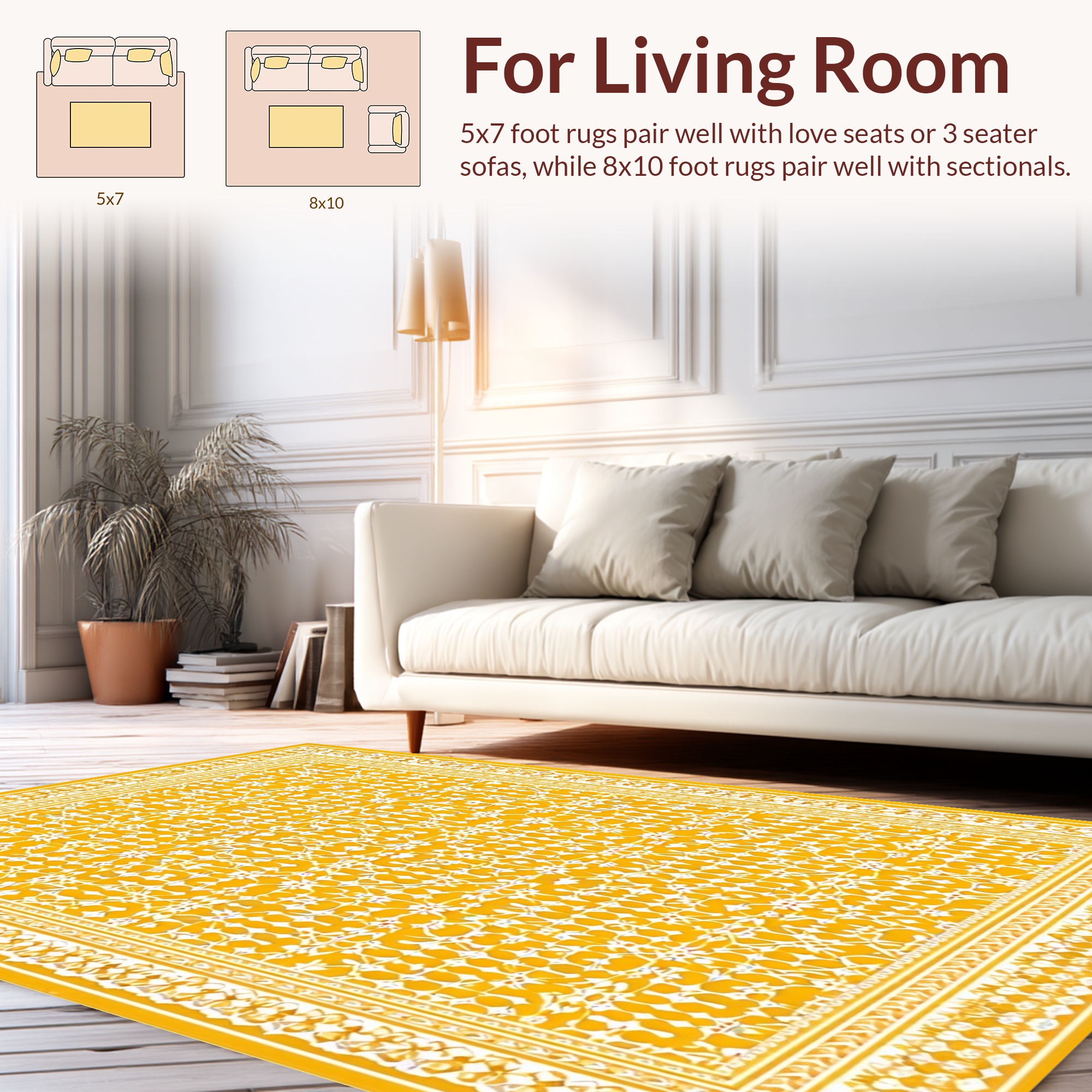 Sunny Yellow Ornate Floral Cheerful Rug