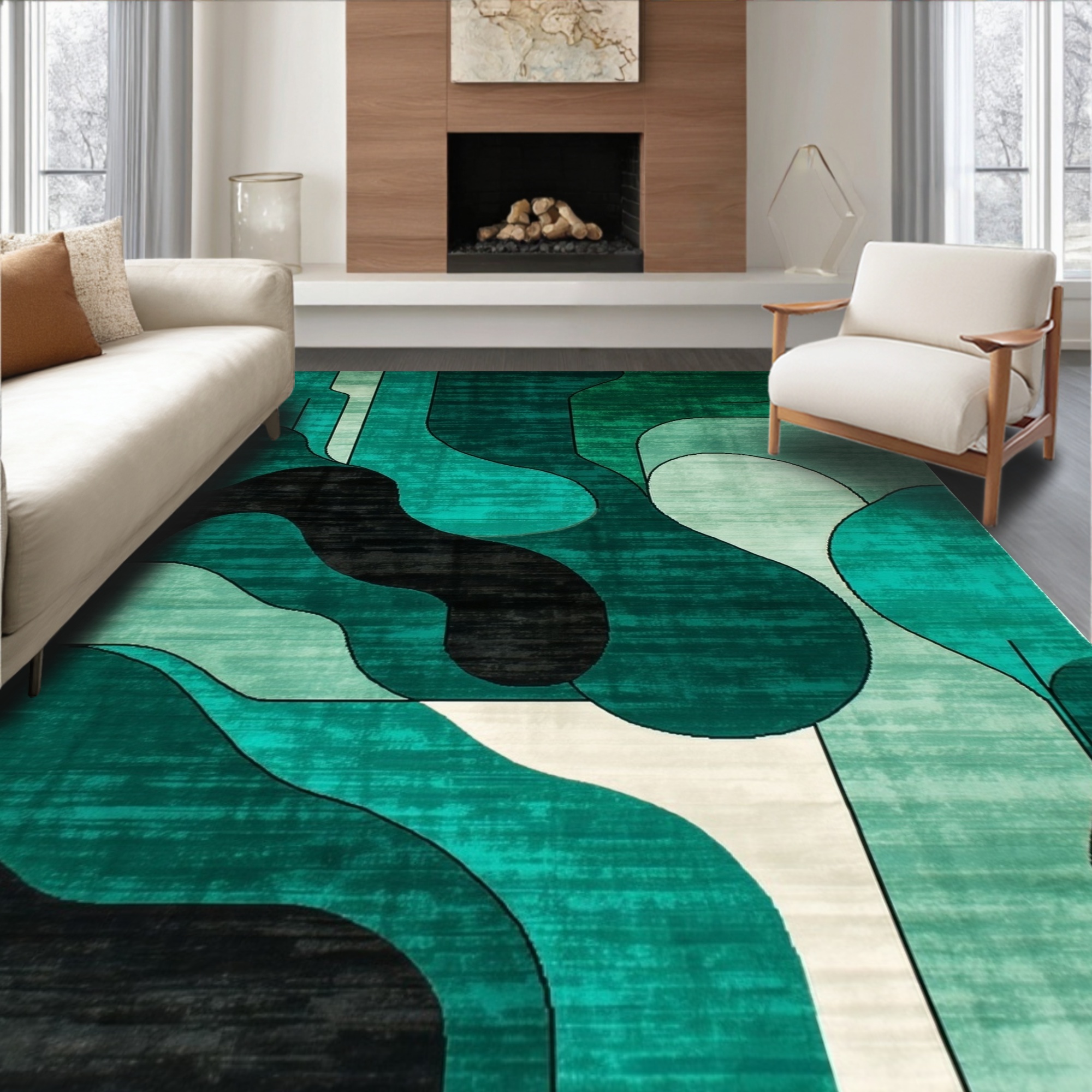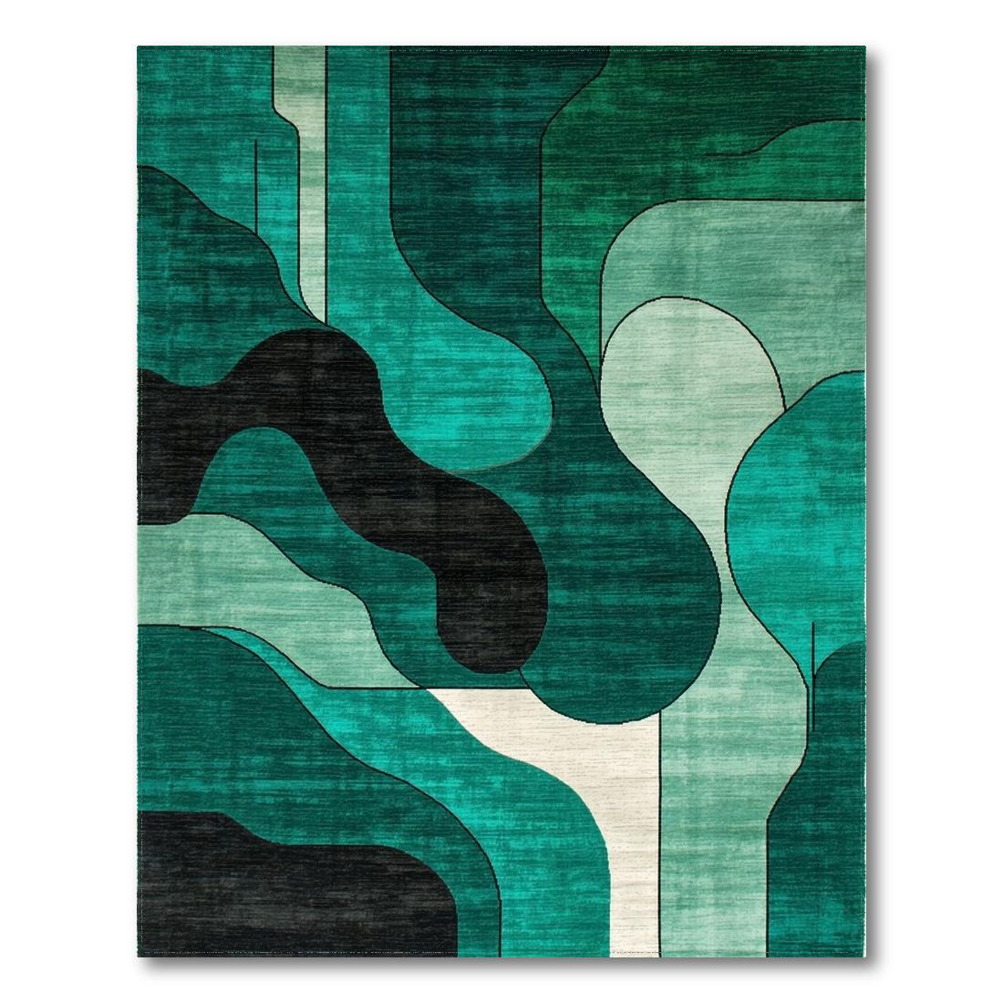 Teal Abstract Flowing Modern Rug