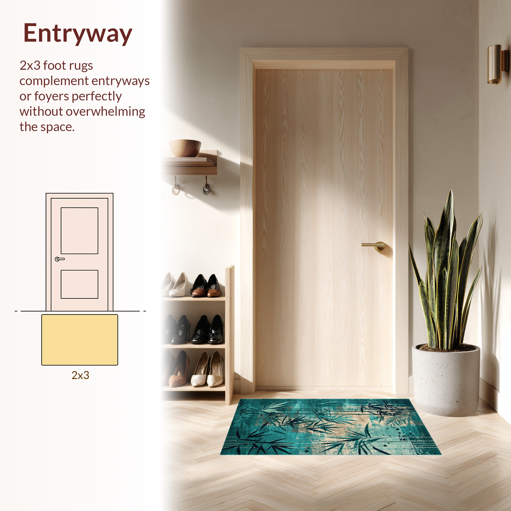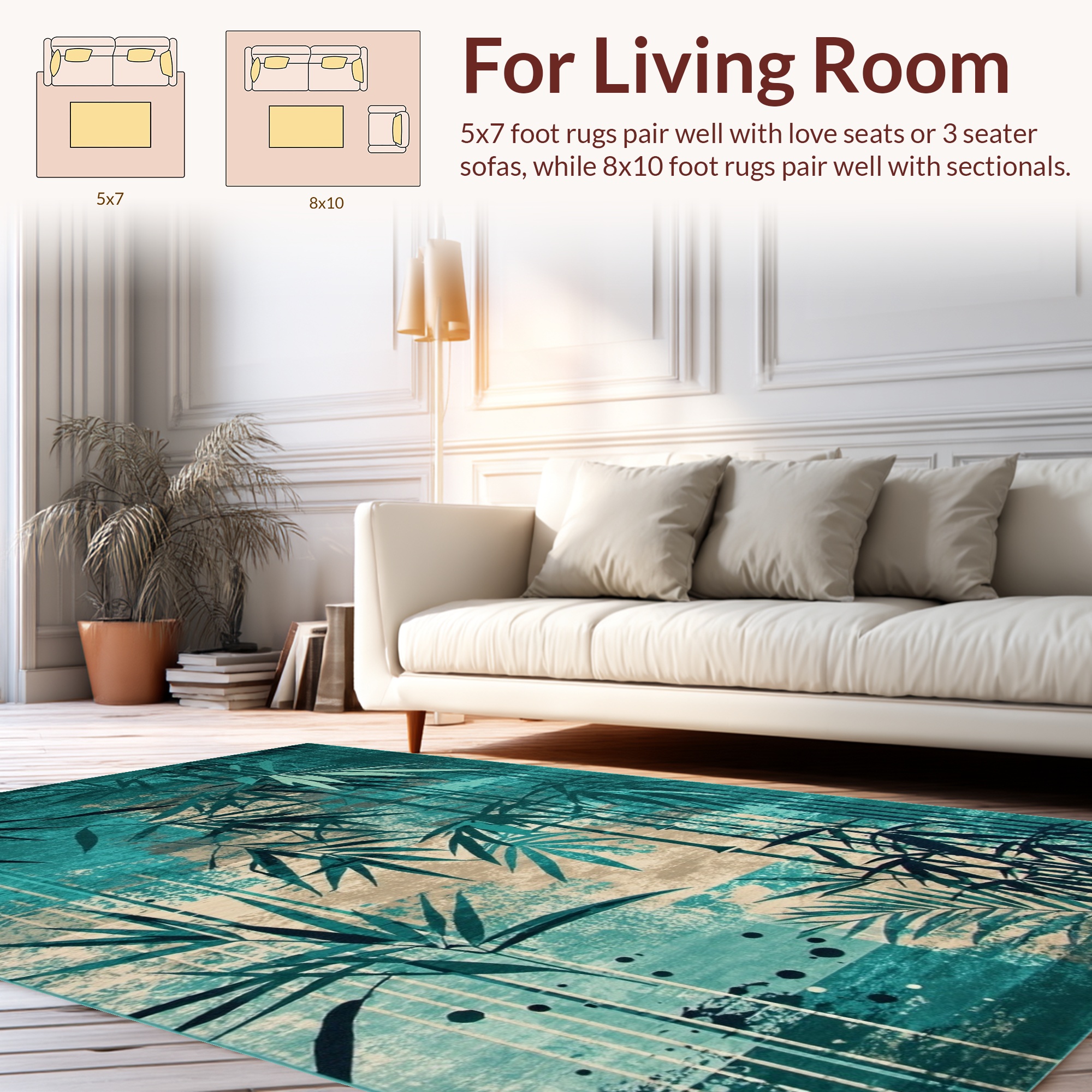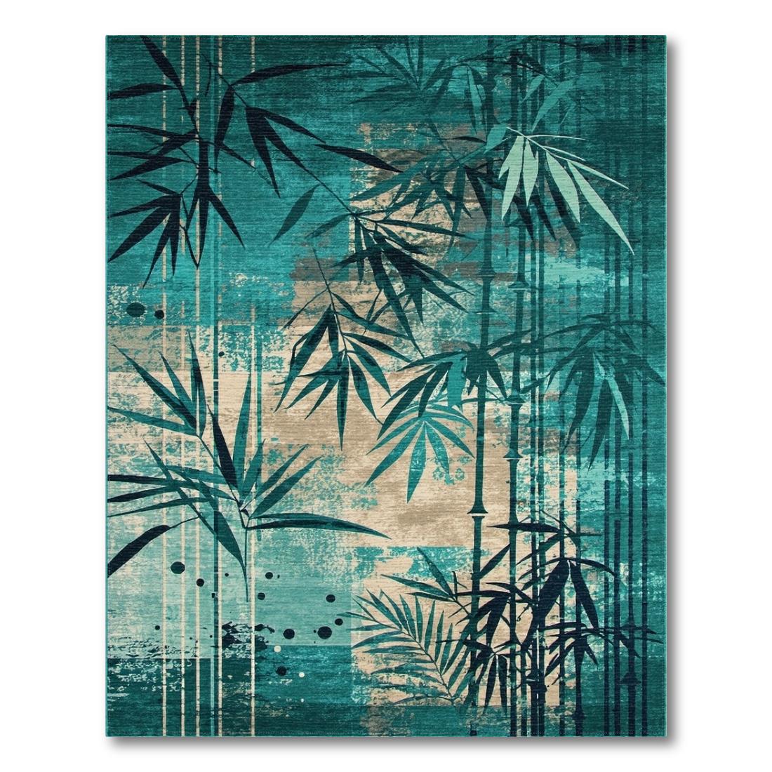 Teal Bamboo Leaf Serene Rug