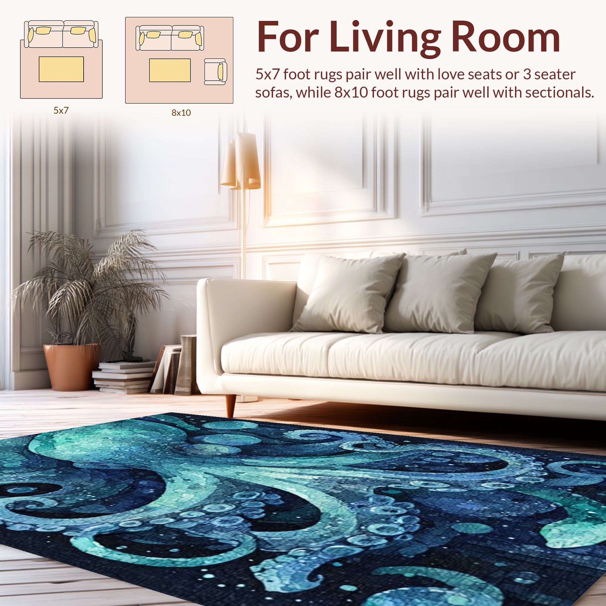 Teal Blue Octopus Serene Rug