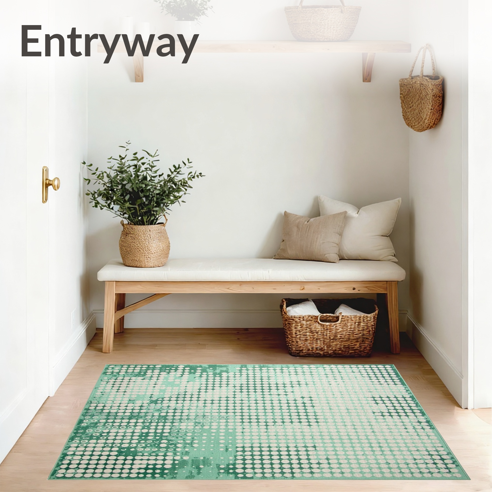 Teal Dotted Circles Modern Rug
