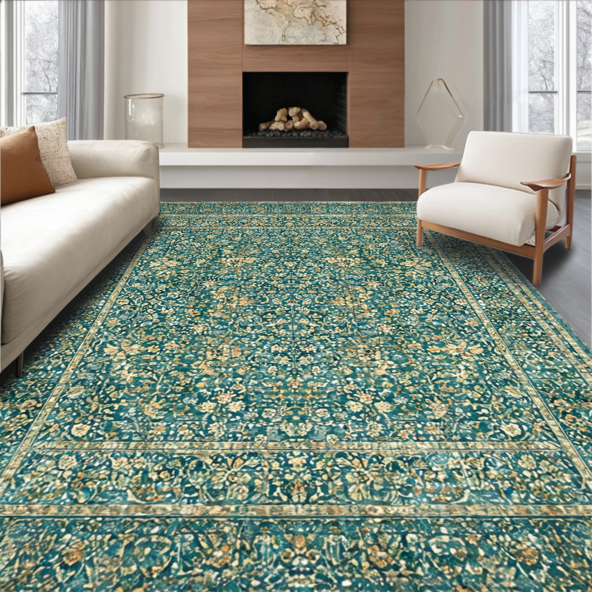 Teal Floral Vintage-Style Rug