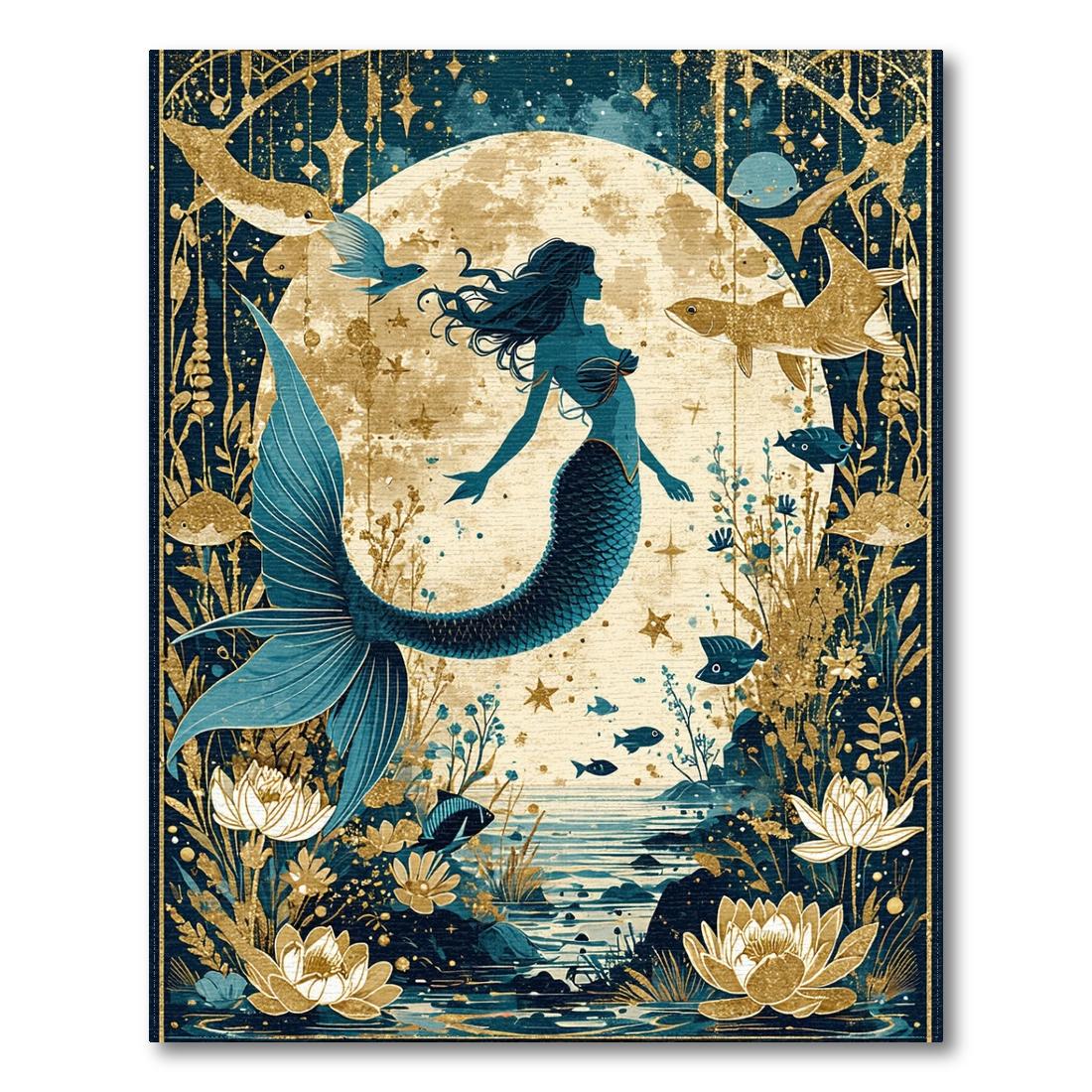 Teal & Gold Enchanted Underwater Mermaid Rug