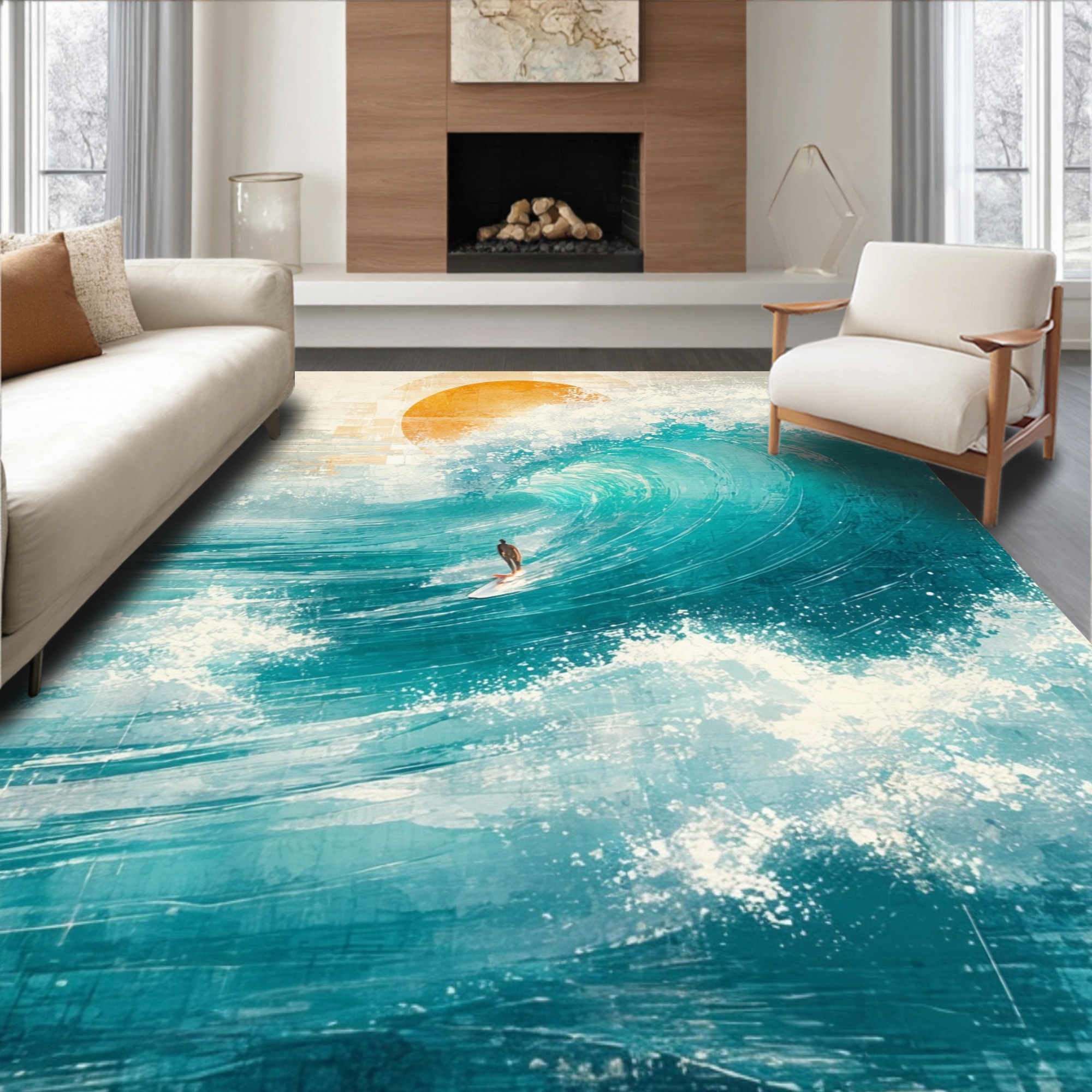 Teal Ocean Wave Adventure Rug