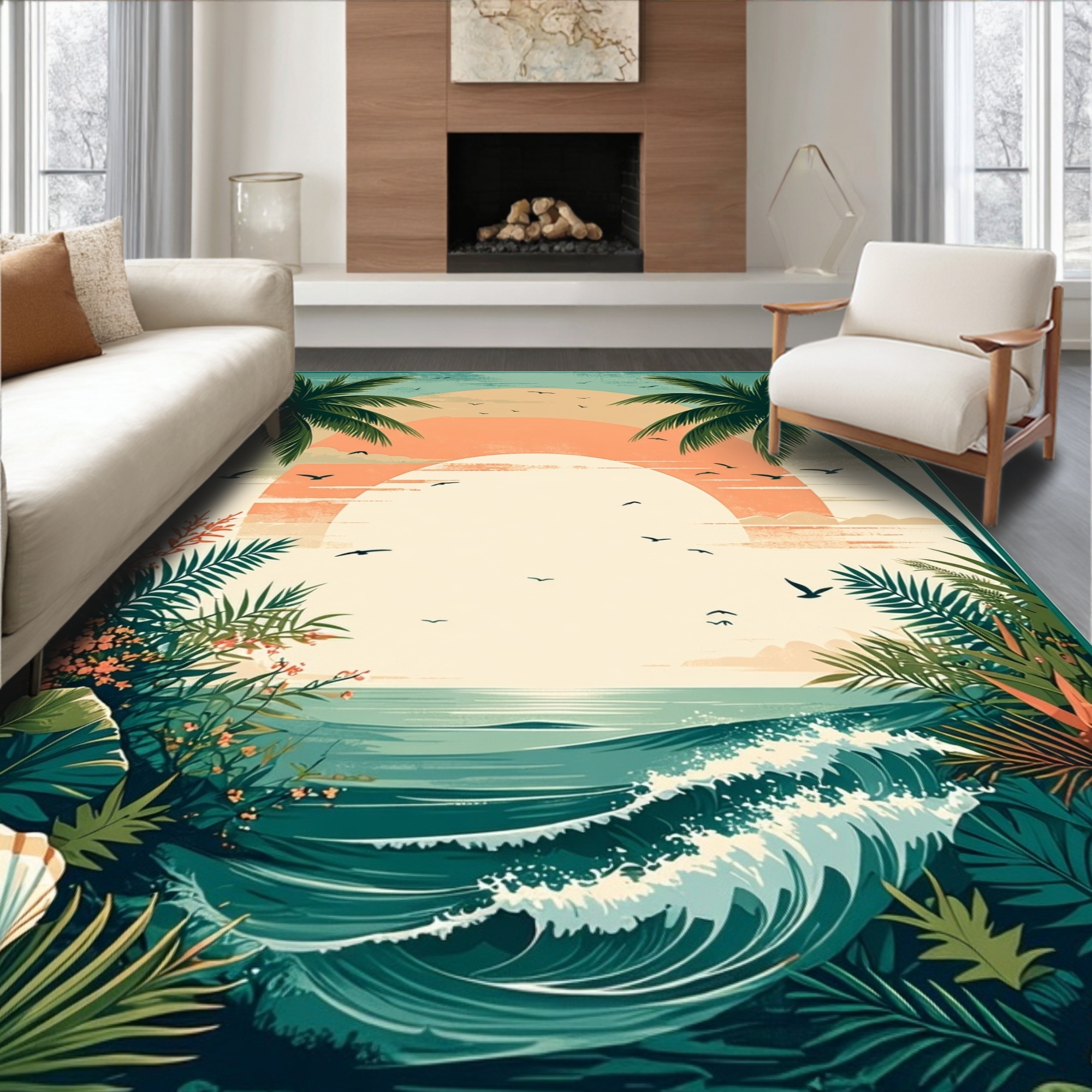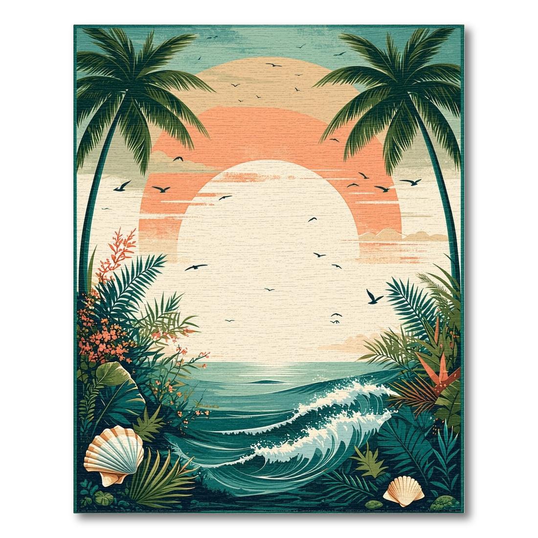 Teal Orange Tropical Sunset Coastal Rug