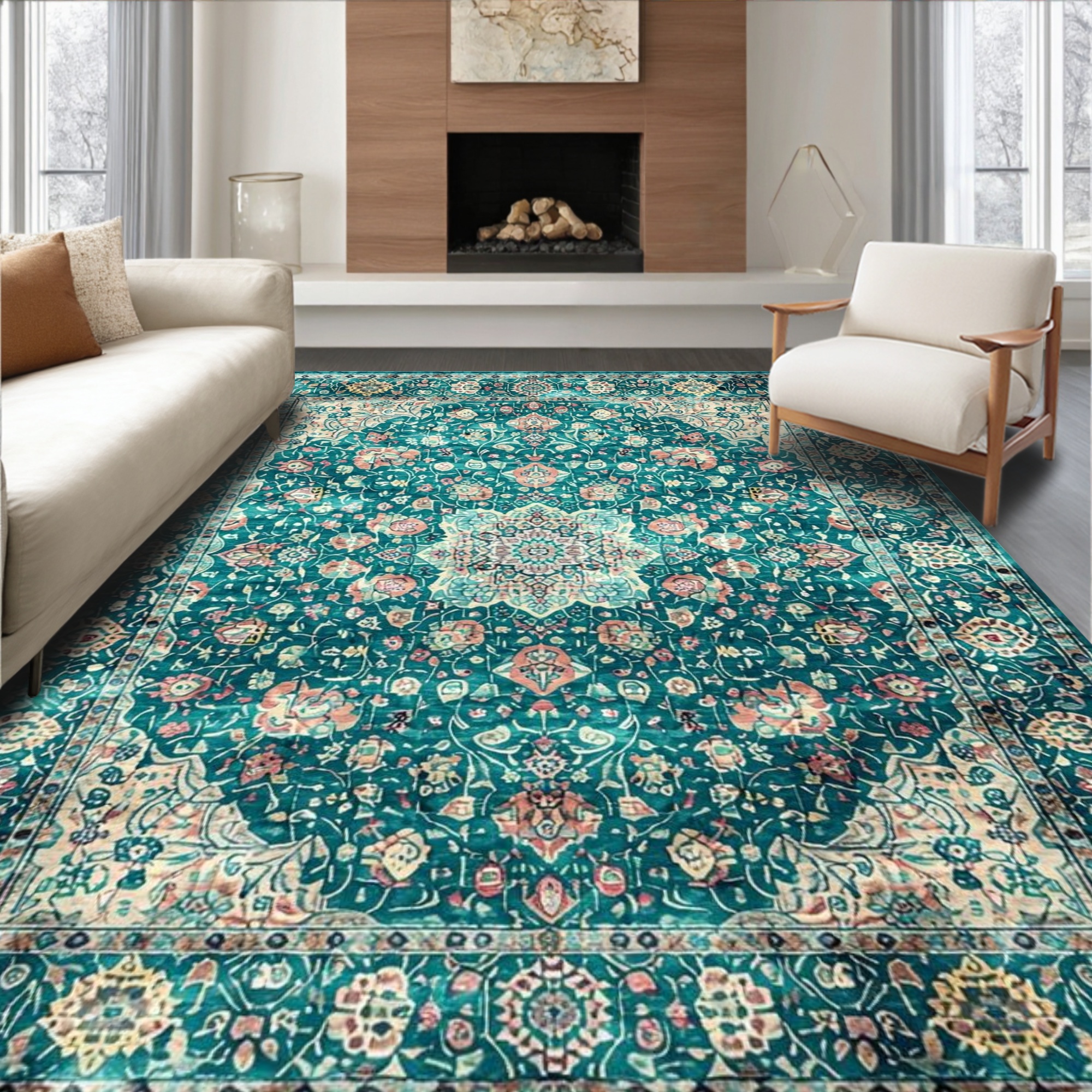 Teal Ornate Floral Elegant Rug