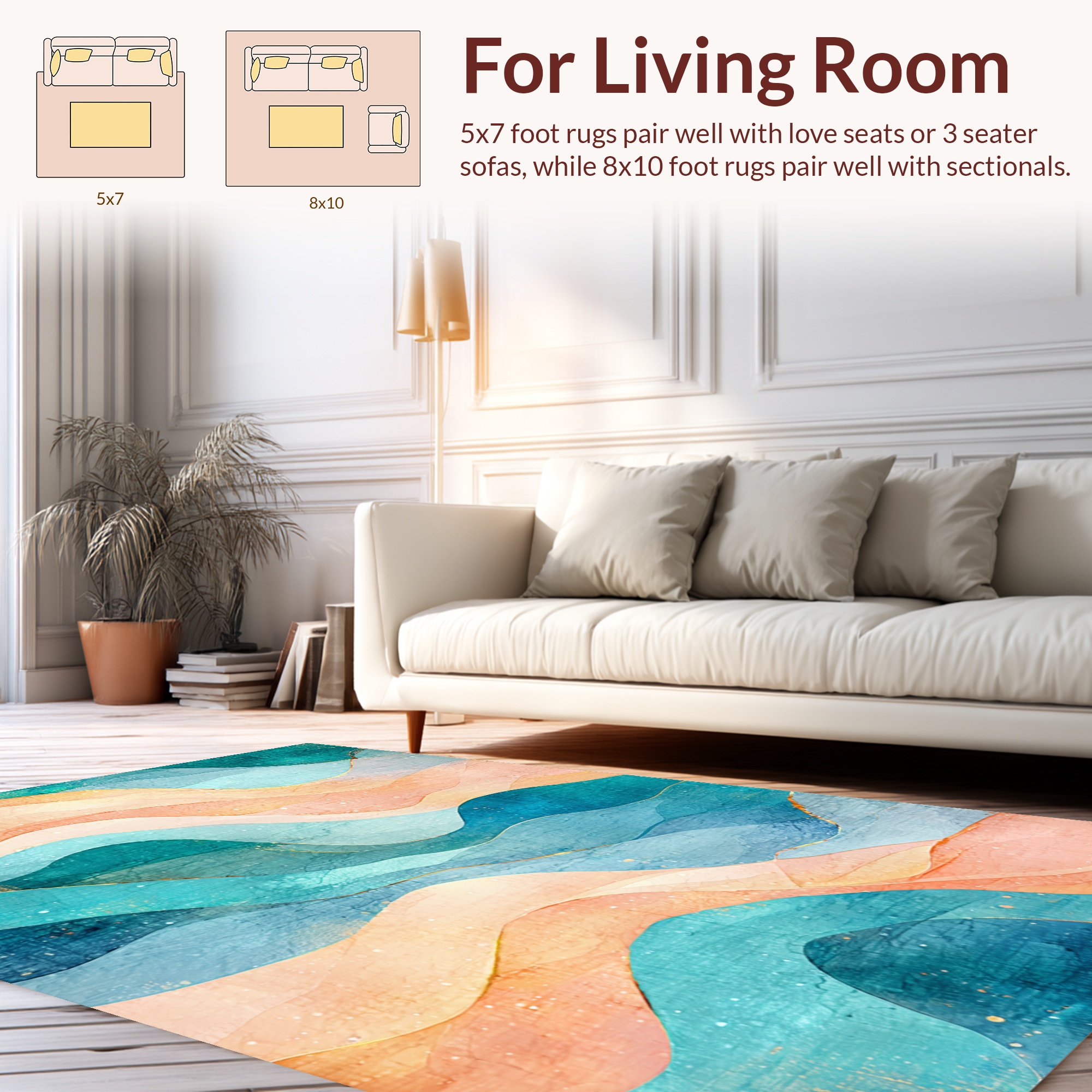 Teal & Peach Wave Tranquil Rug