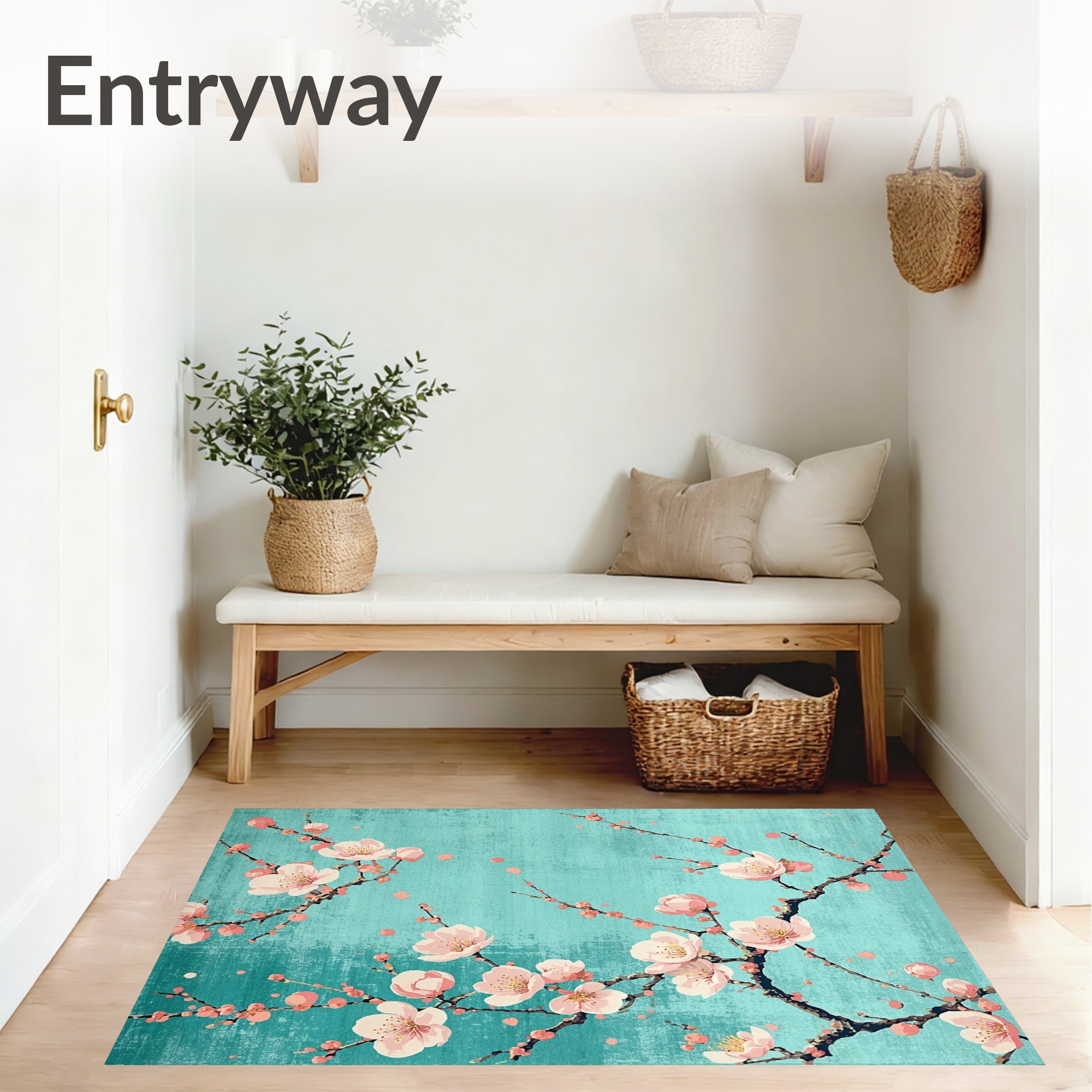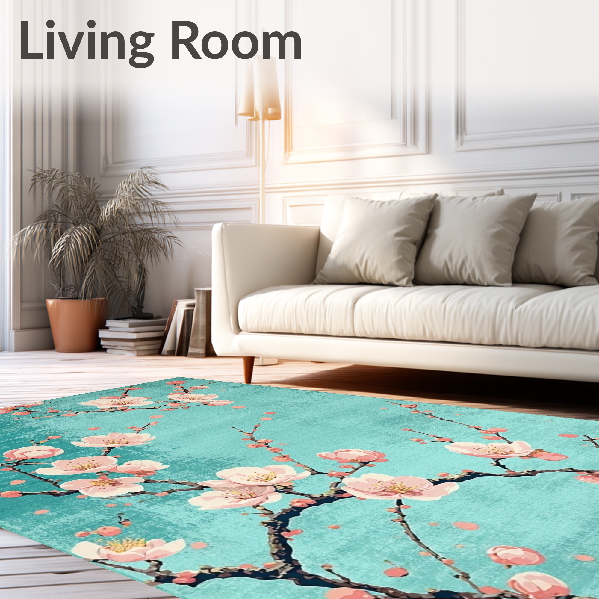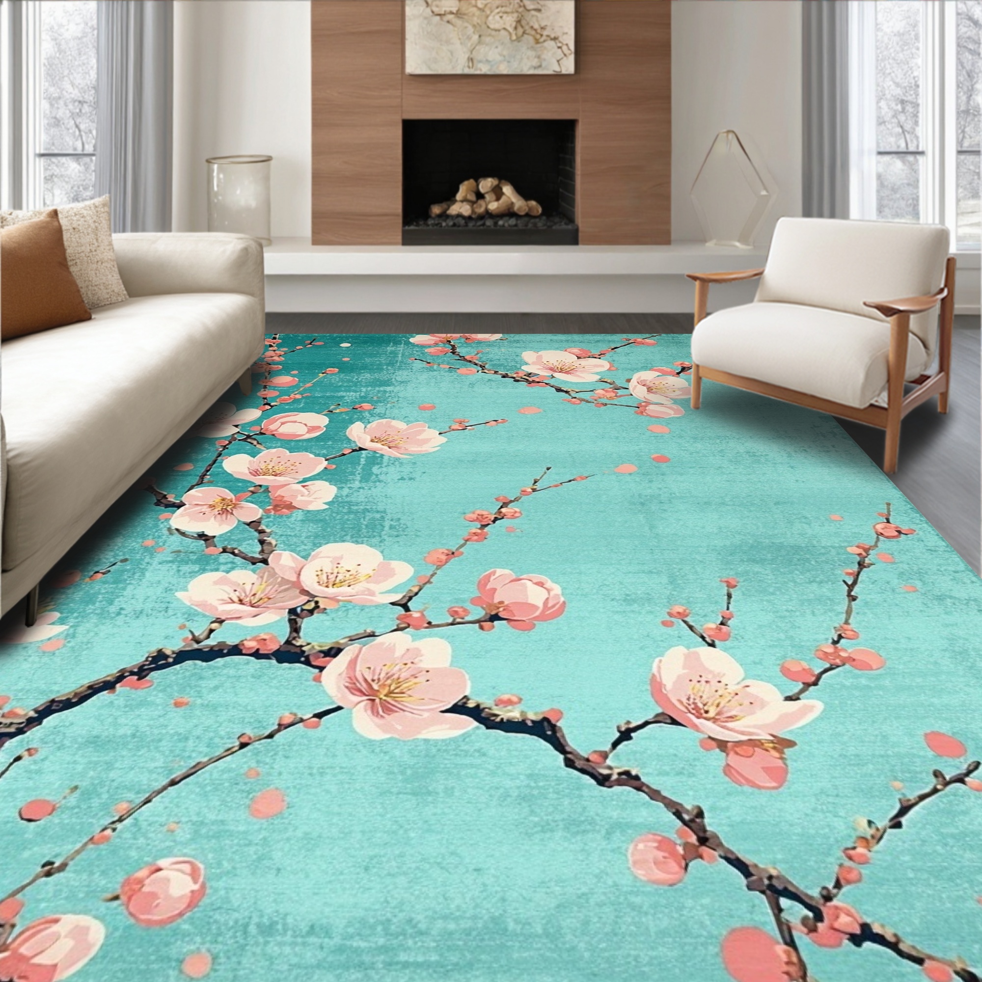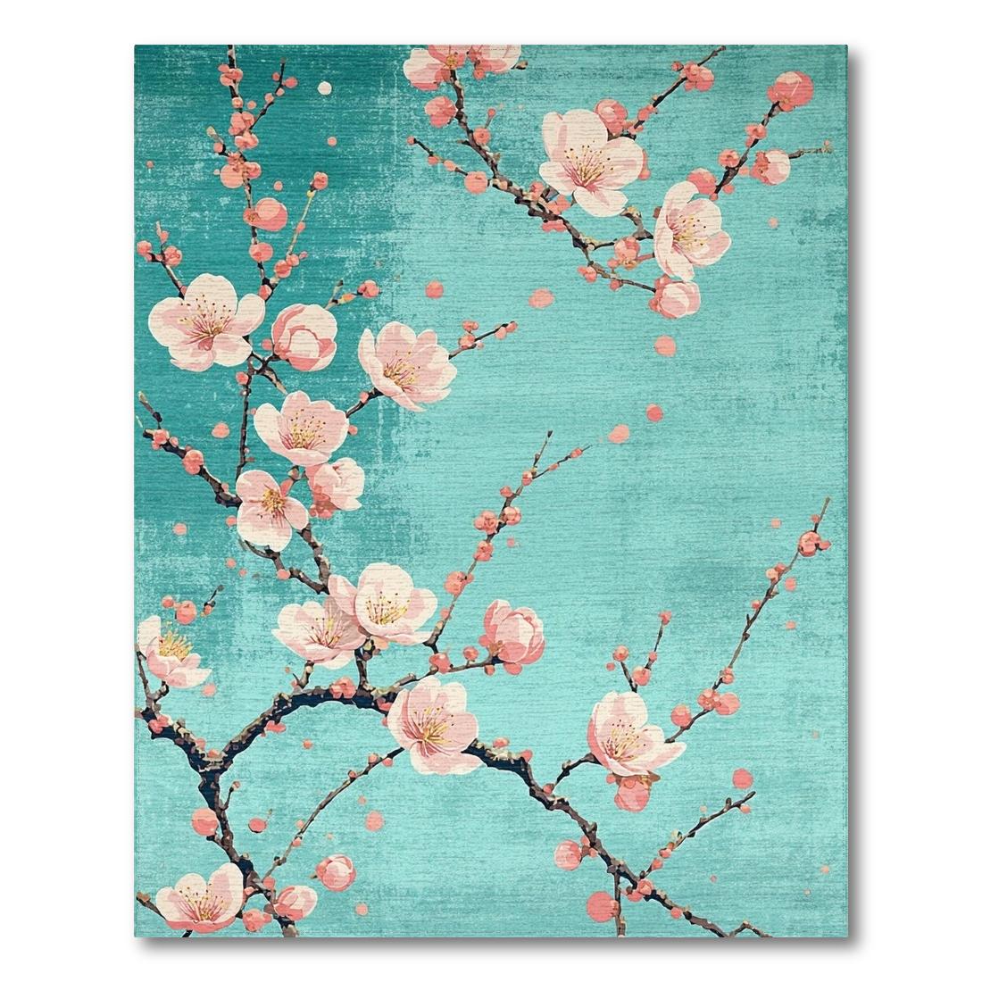 Teal Pink Cherry Blossom Serene Rug