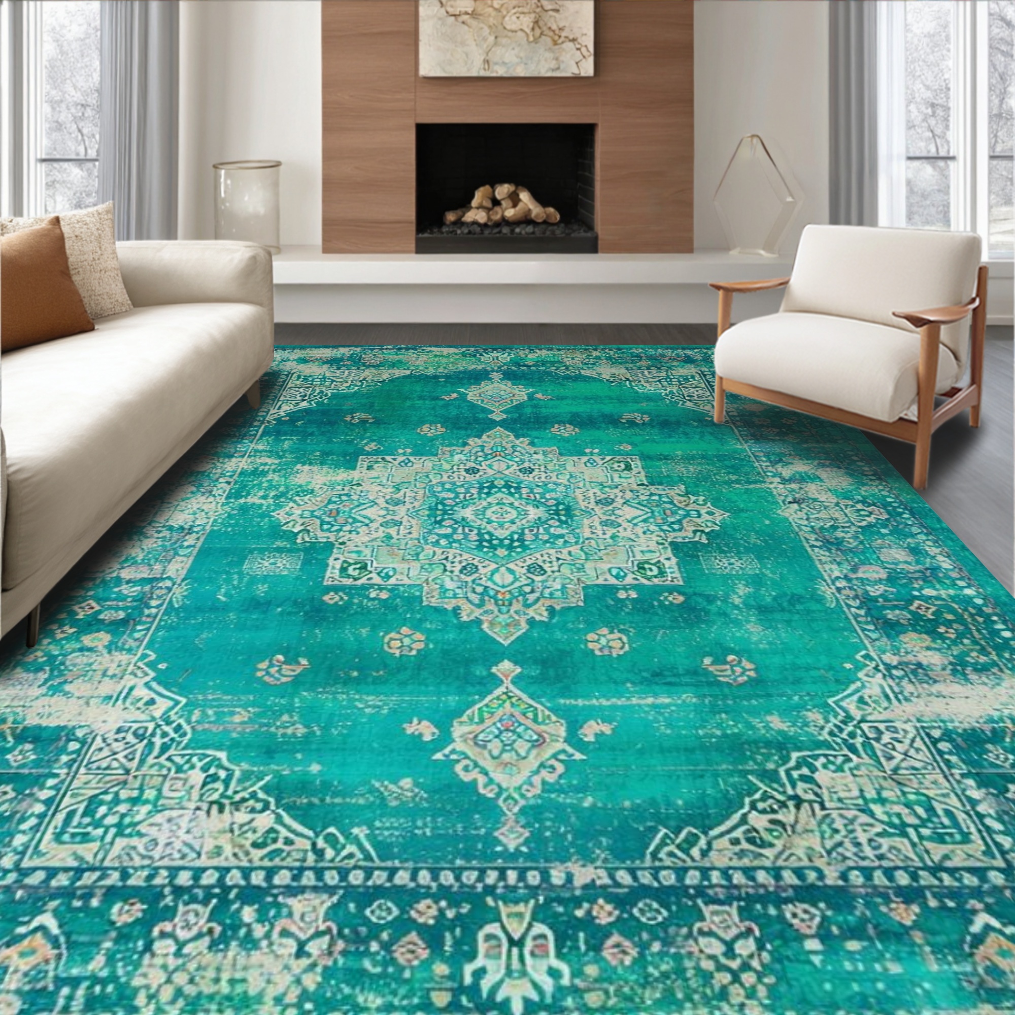 Teal Vintage Ornate Medallion Rug