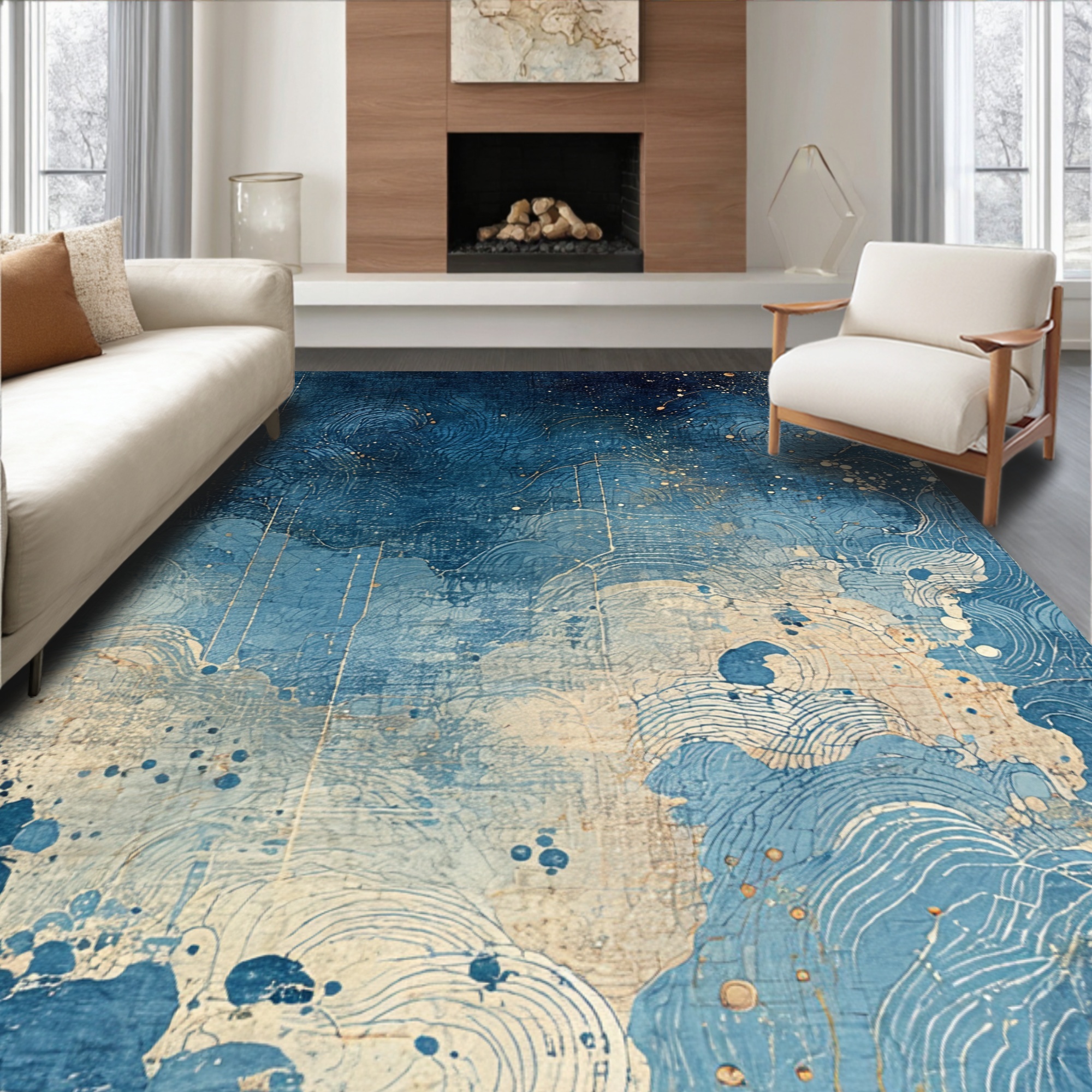 Tranquil Blue-Beige Abstract Swirl Rug