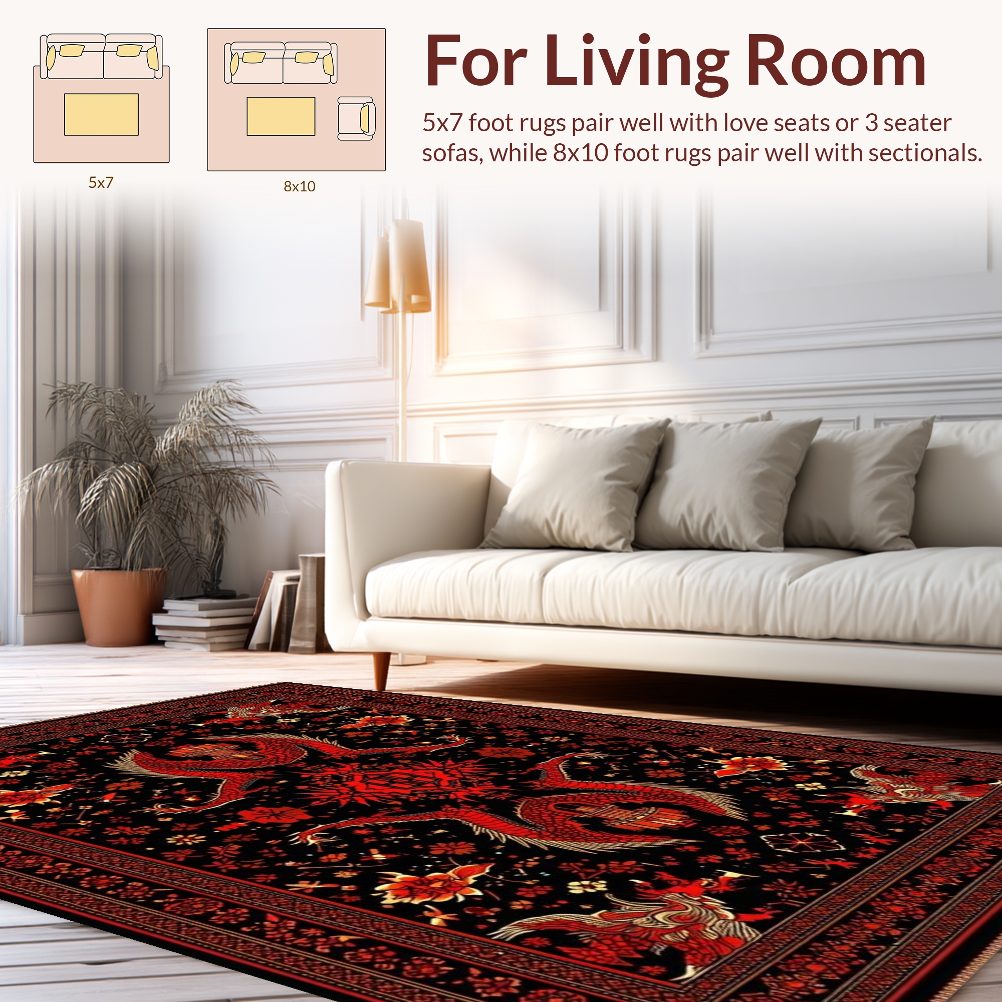 Vibrant Black-Red Dragon Floral Rug