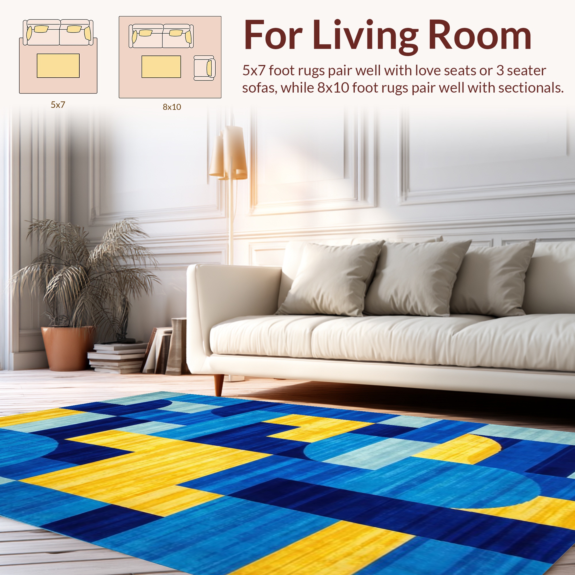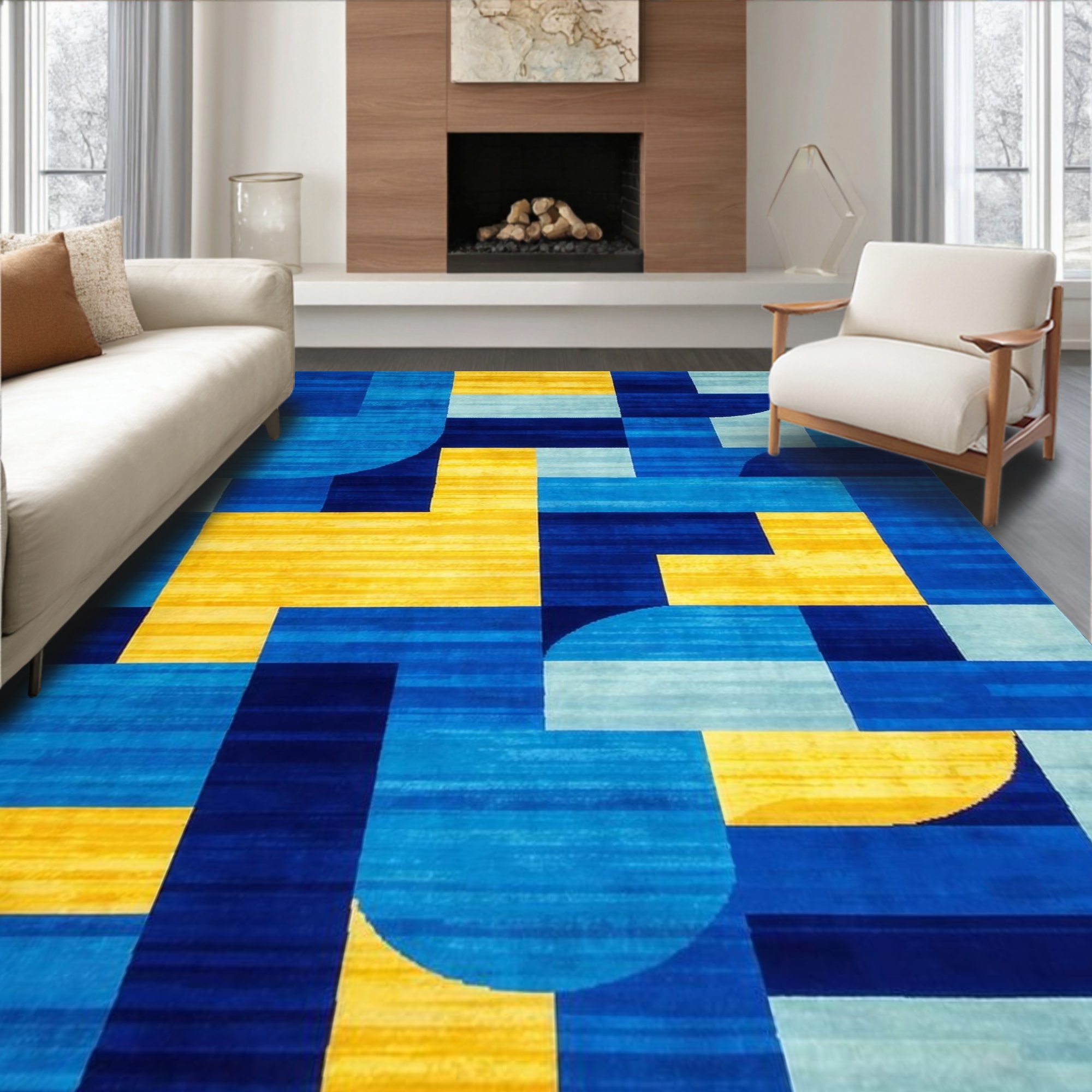 Vibrant blue-yellow geometric modern rug