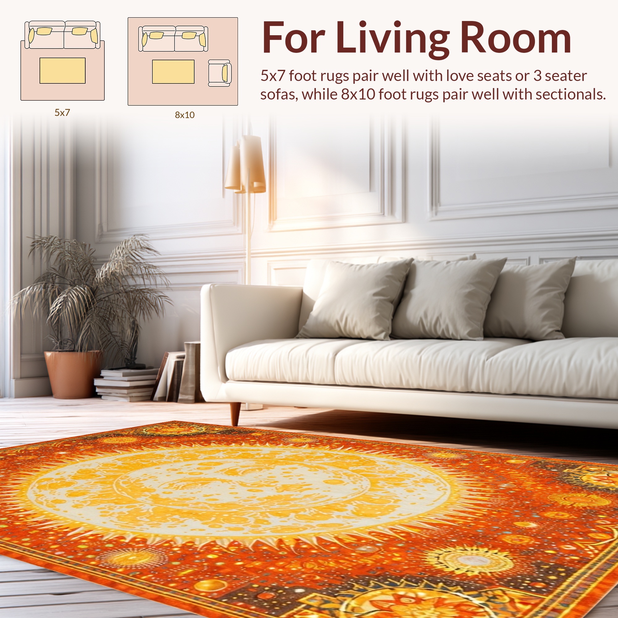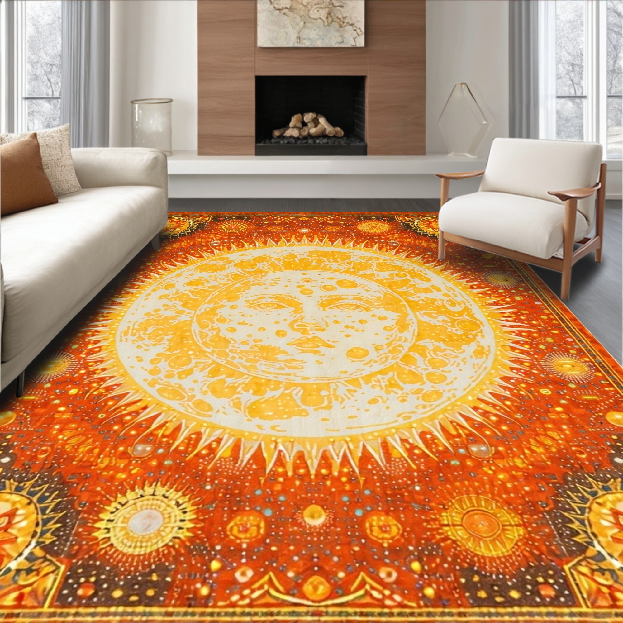 Vibrant Celestial Orange Gold Rug