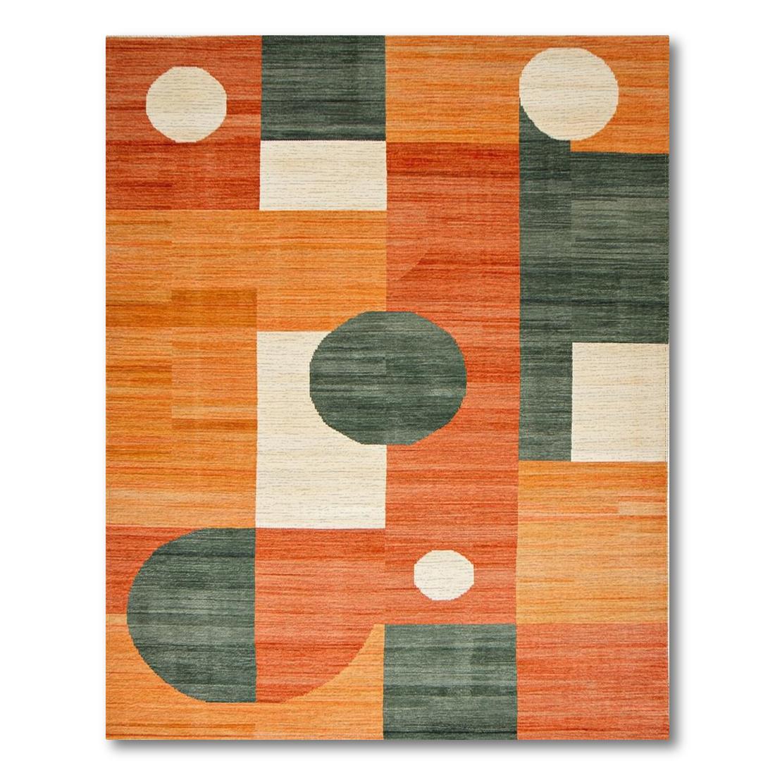 Vibrant geometric orange and gray rug