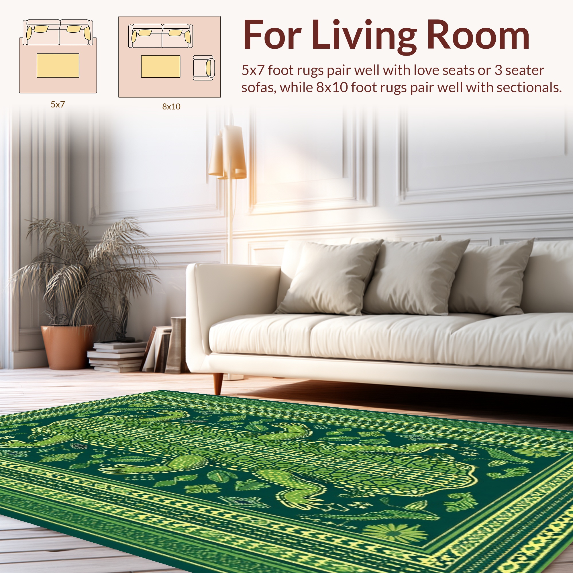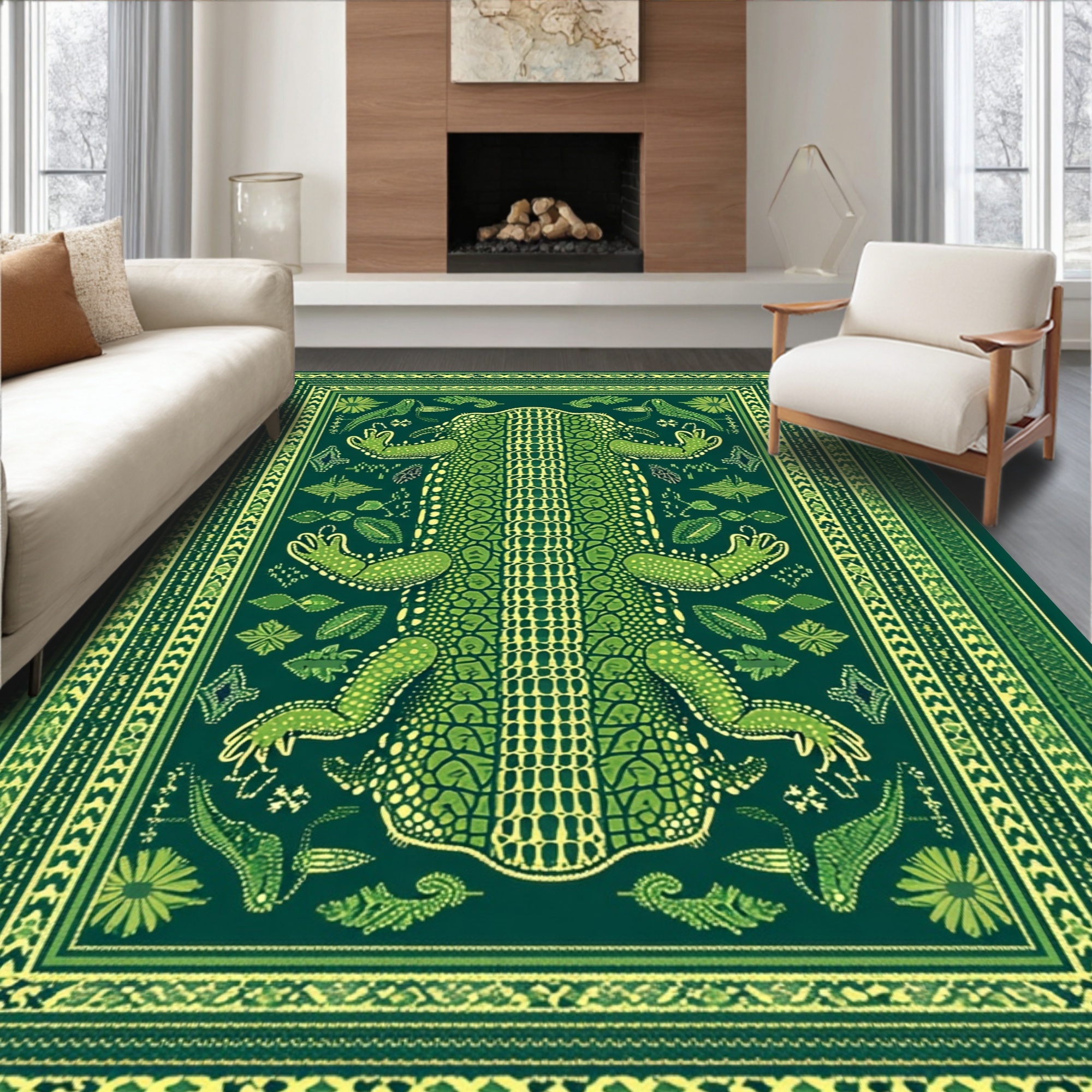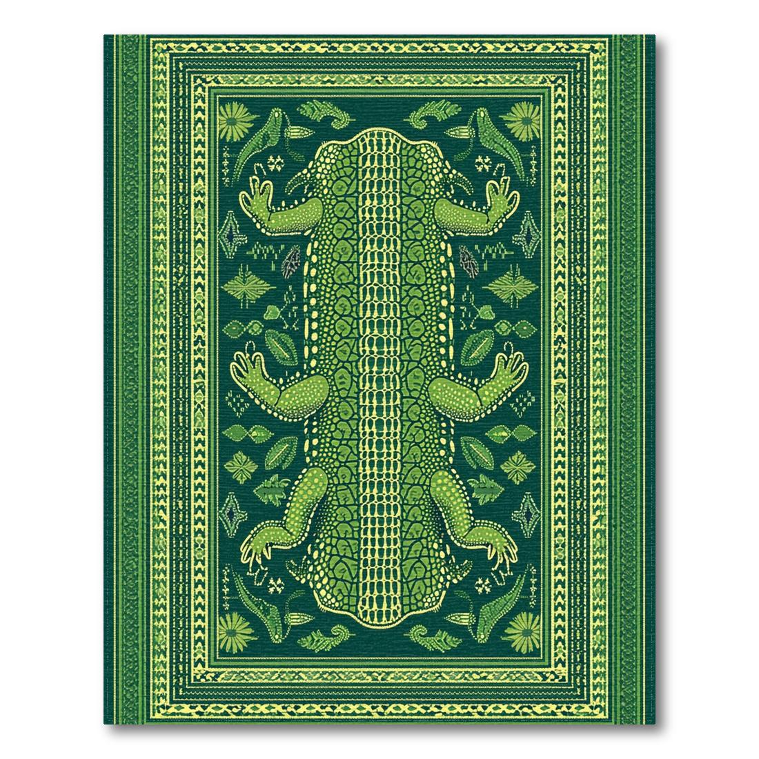 Vibrant Green Alligator & Floral Print Rug