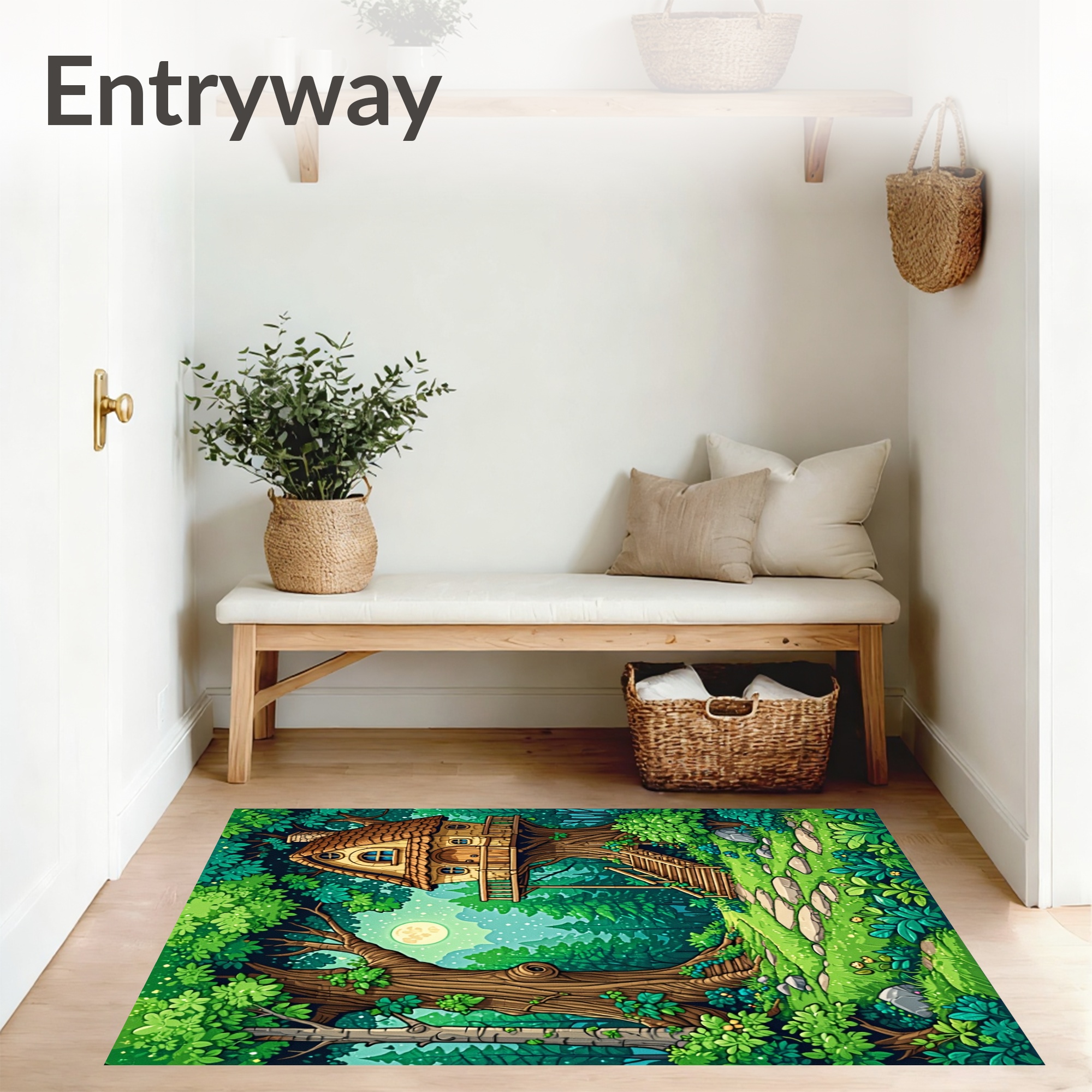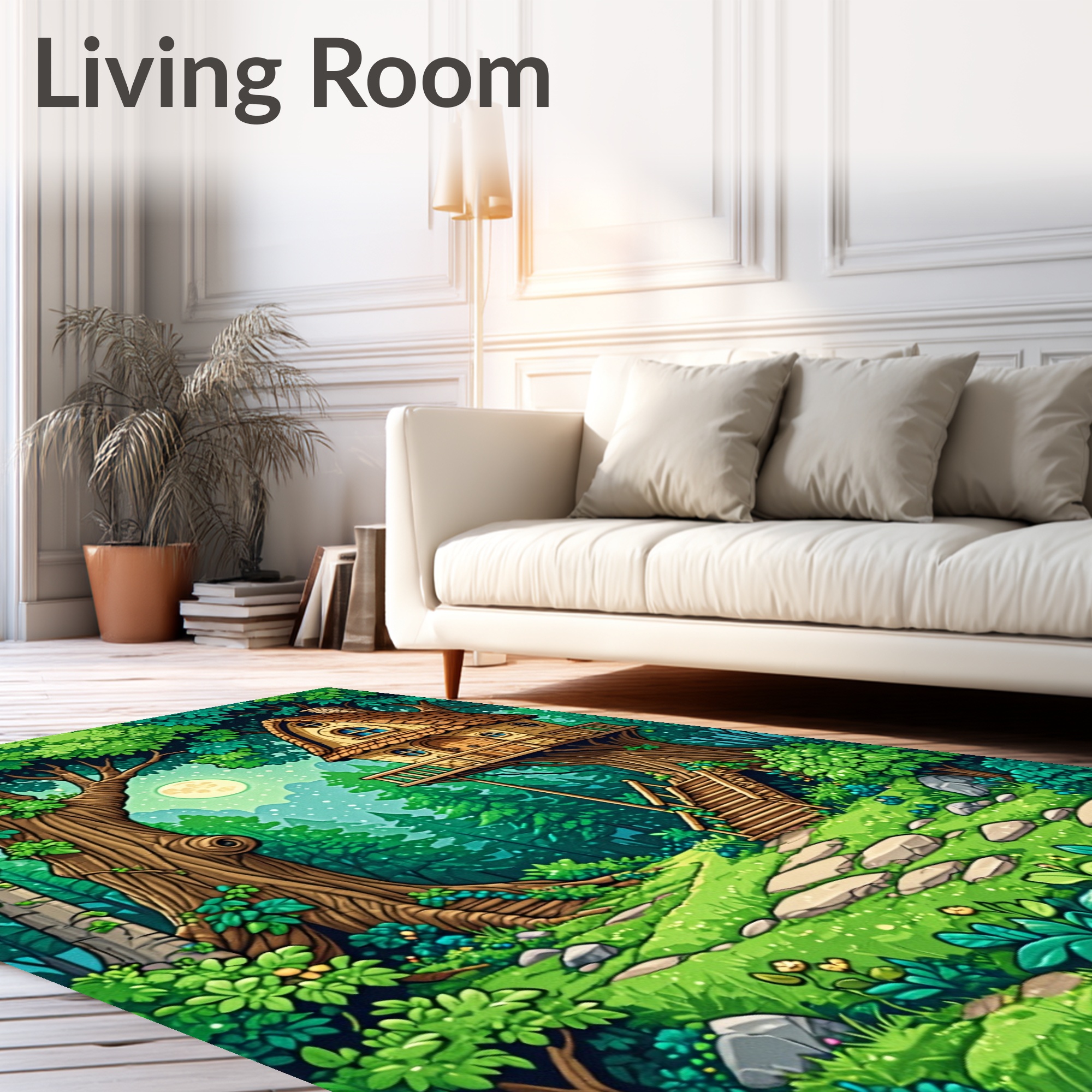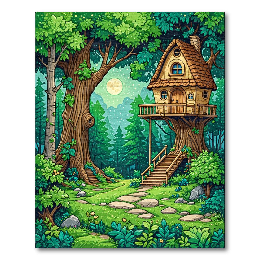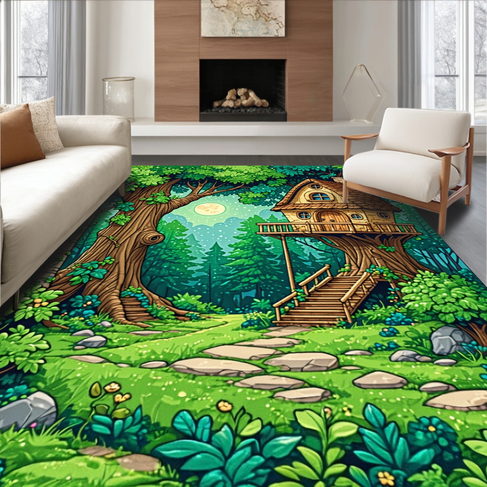 Vibrant Green Enchanted Forest Treehouse Rug