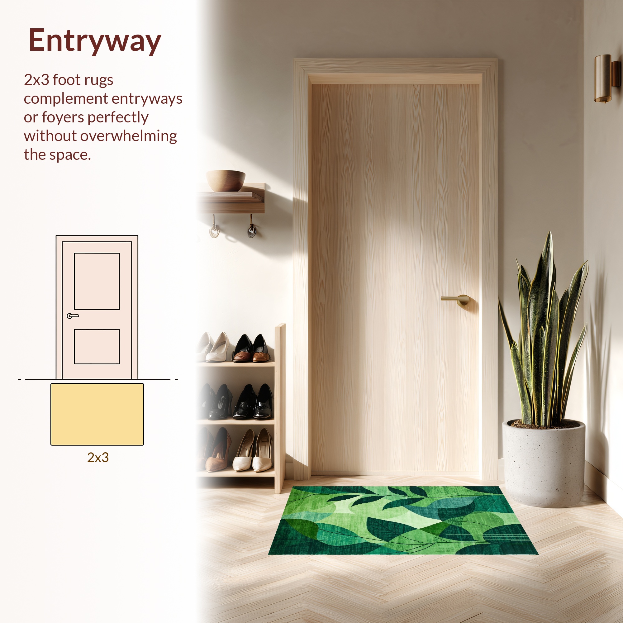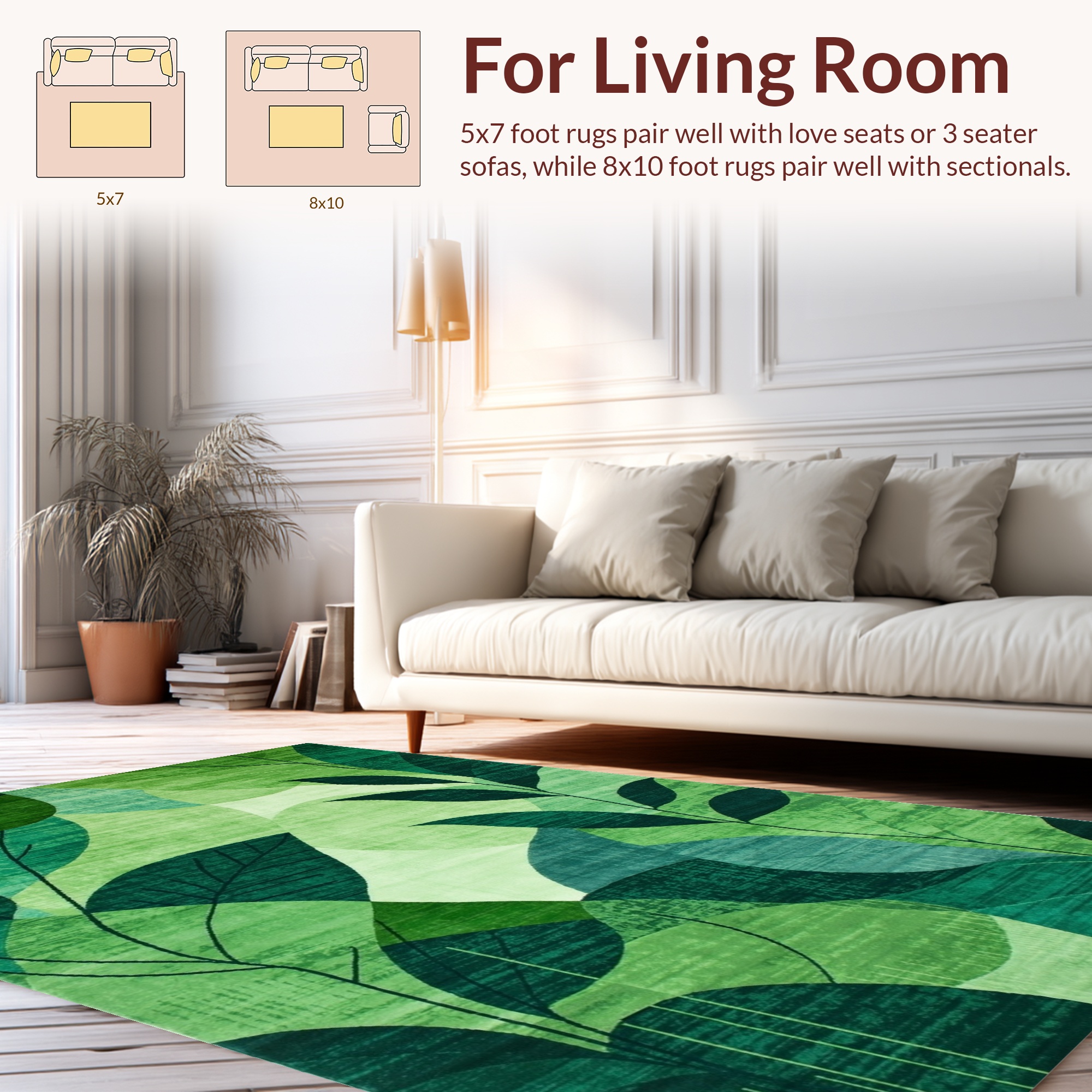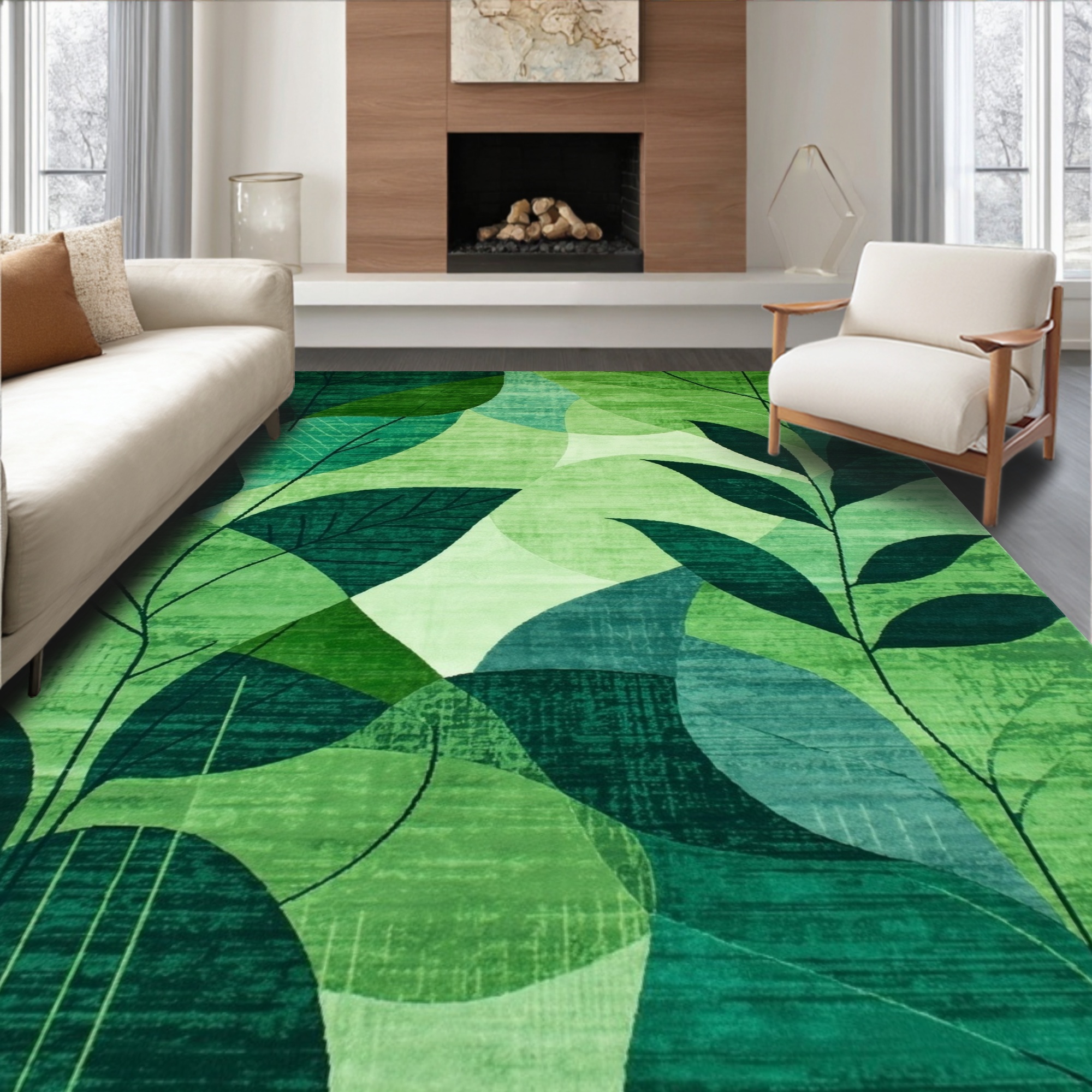 Vibrant Green Leaf Pattern Calming Rug