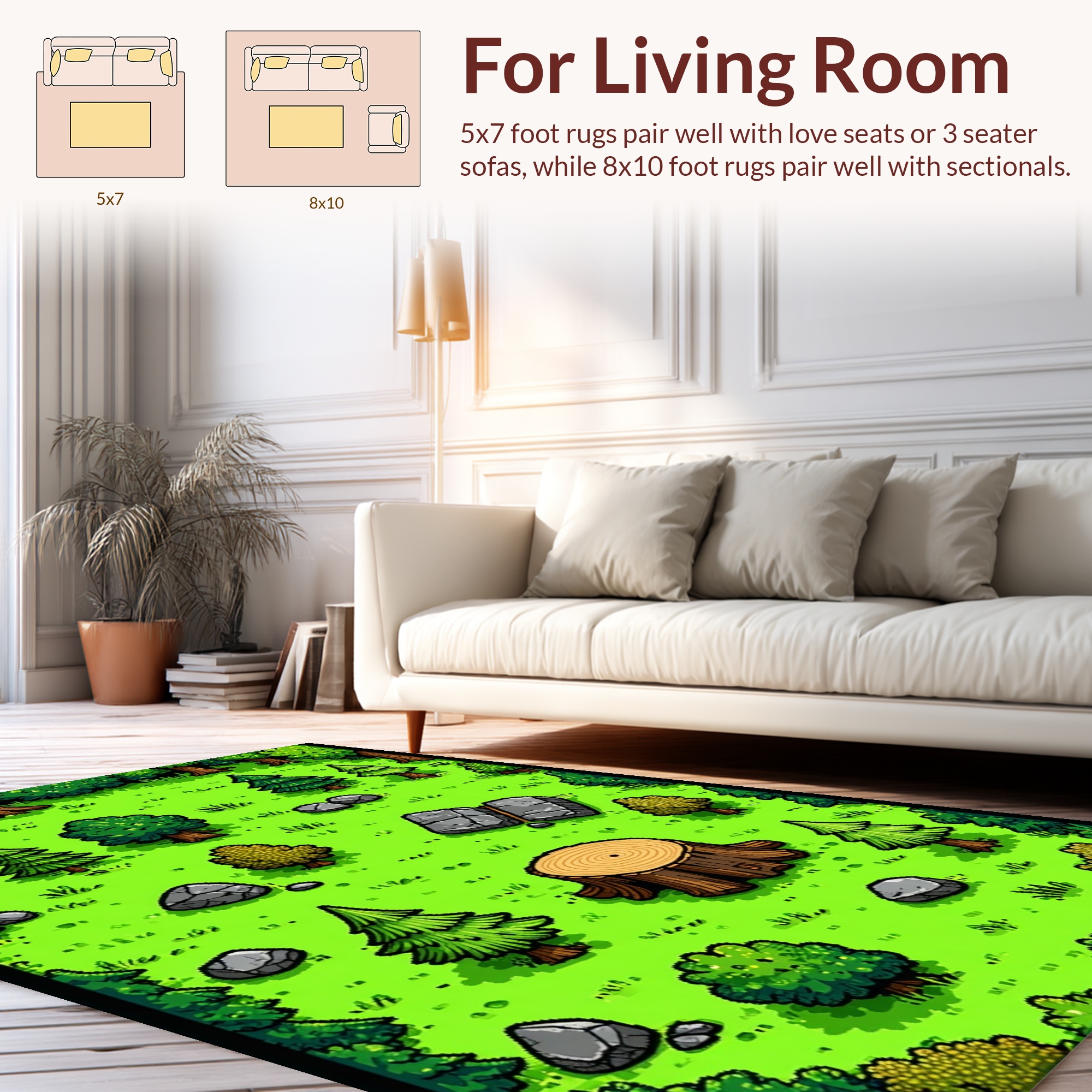 Vibrant Green Pixel Forest Whimsical Rug