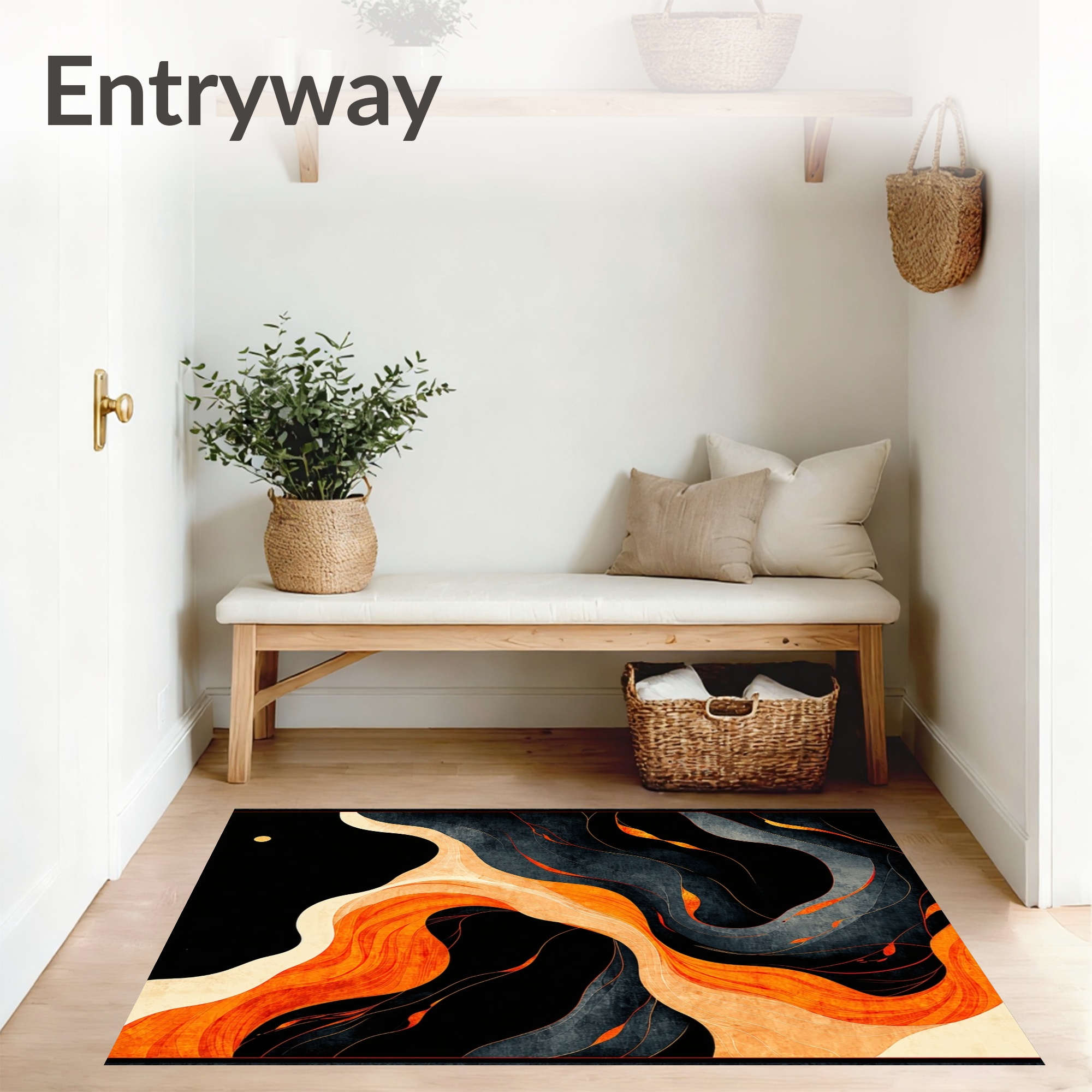 Vibrant Orange & Black Flowing Abstract Rug
