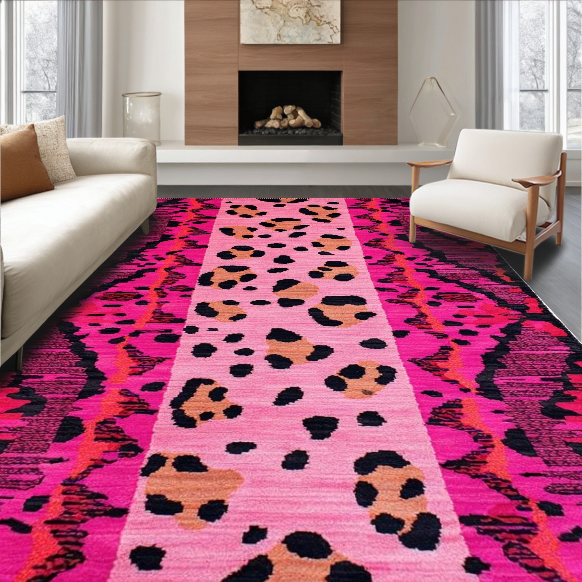 Vibrant Pink Leopard Print Bold Rug