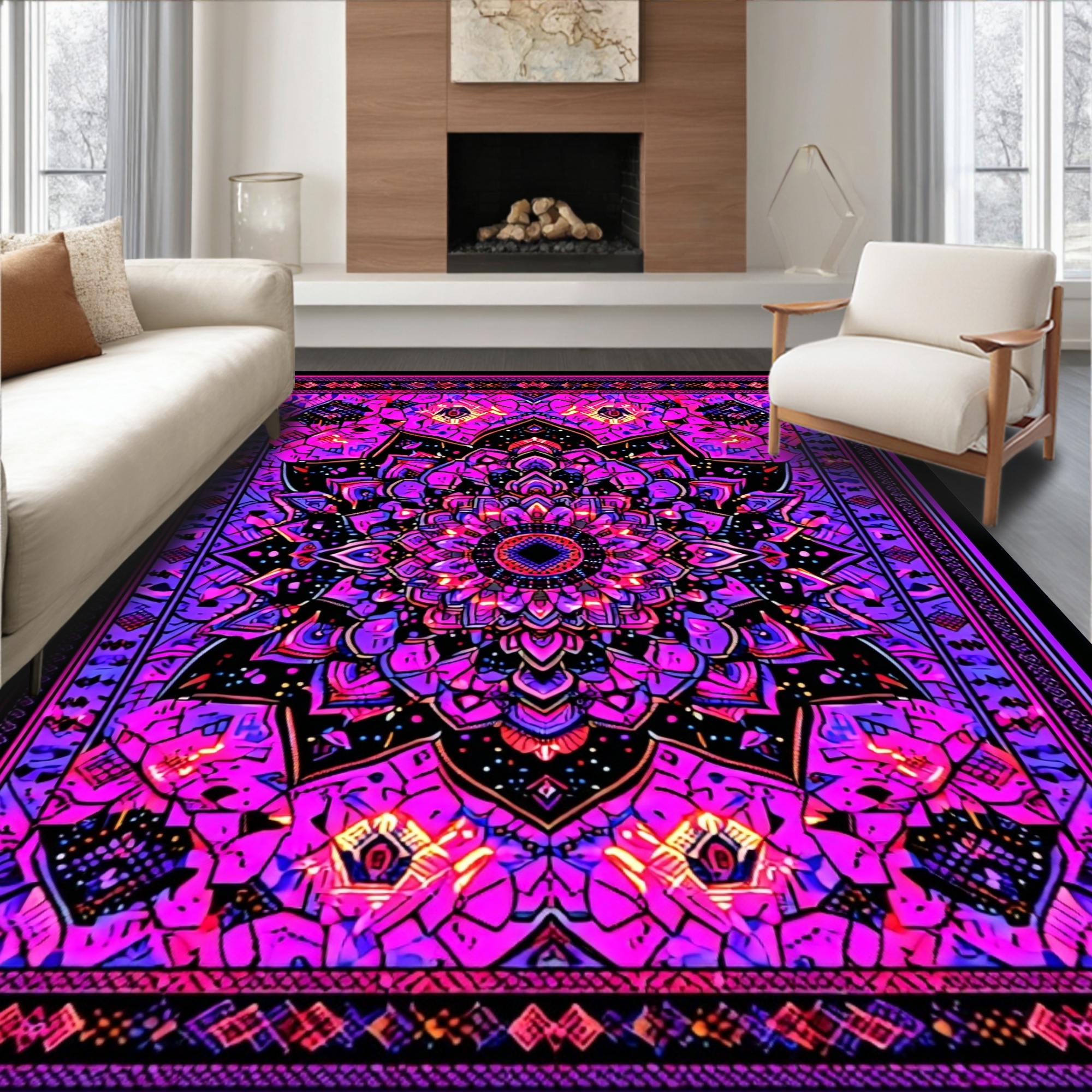Vibrant Pink-Purple Mandala Pattern Rug