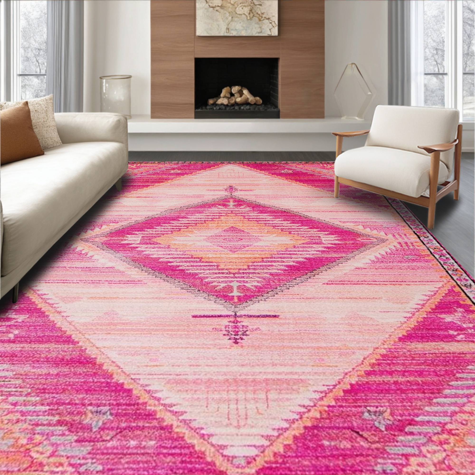 Vibrant Pink Tribal Diamond Rug