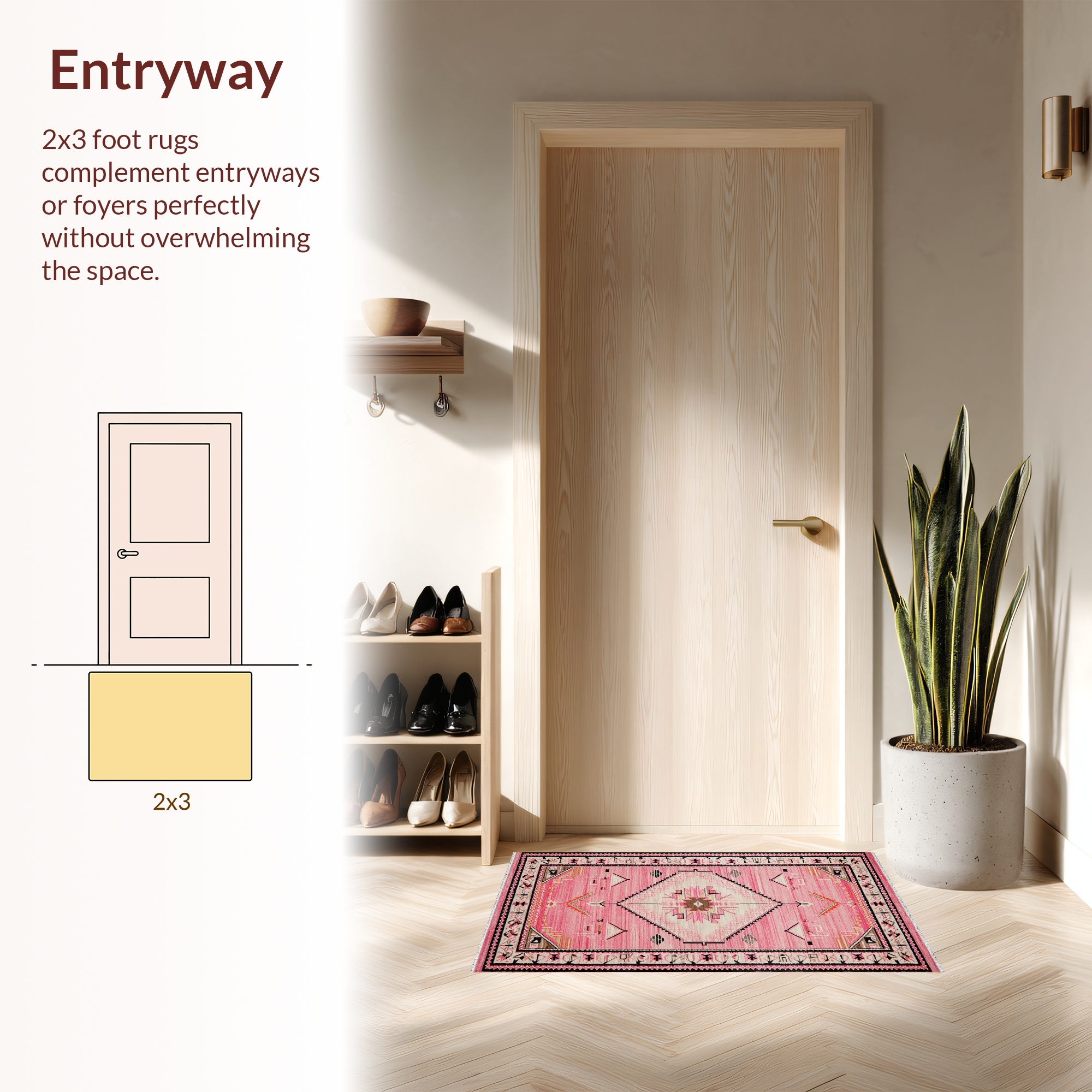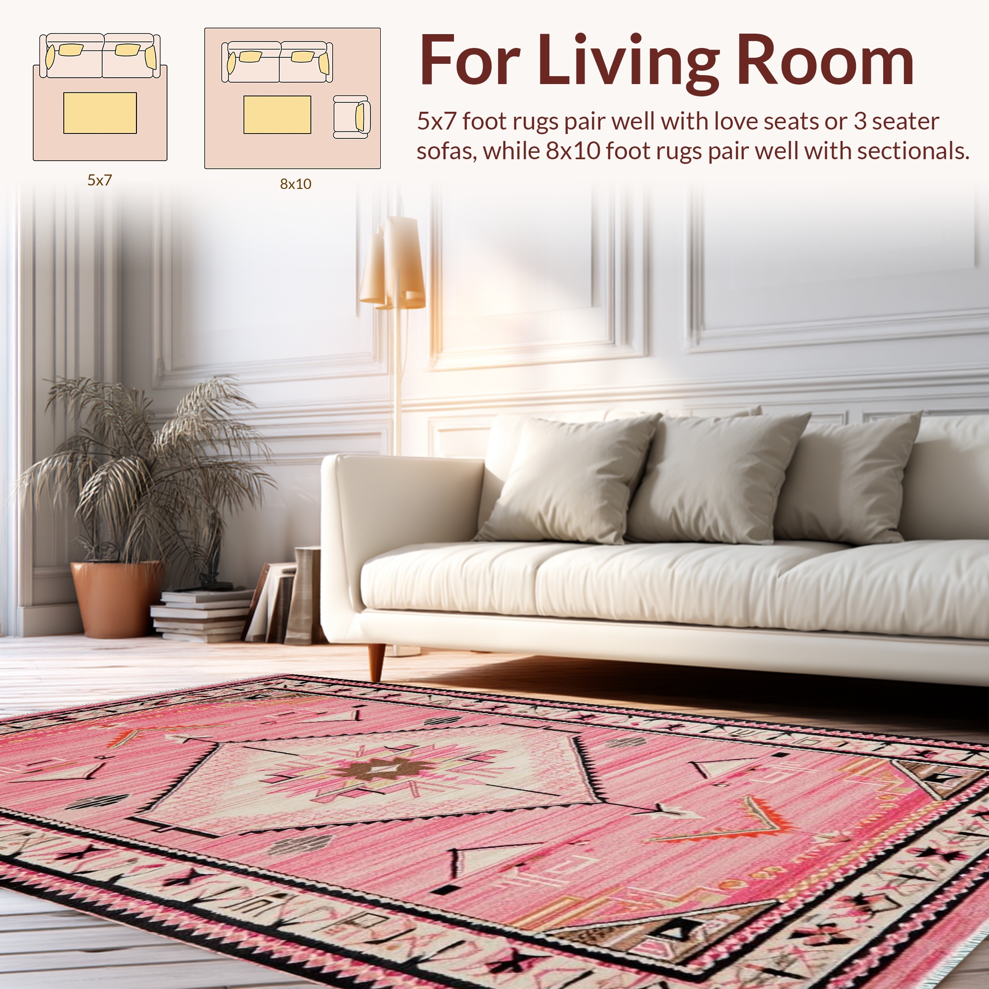 Vibrant Pink Tribal Geometric Cheerful Rug