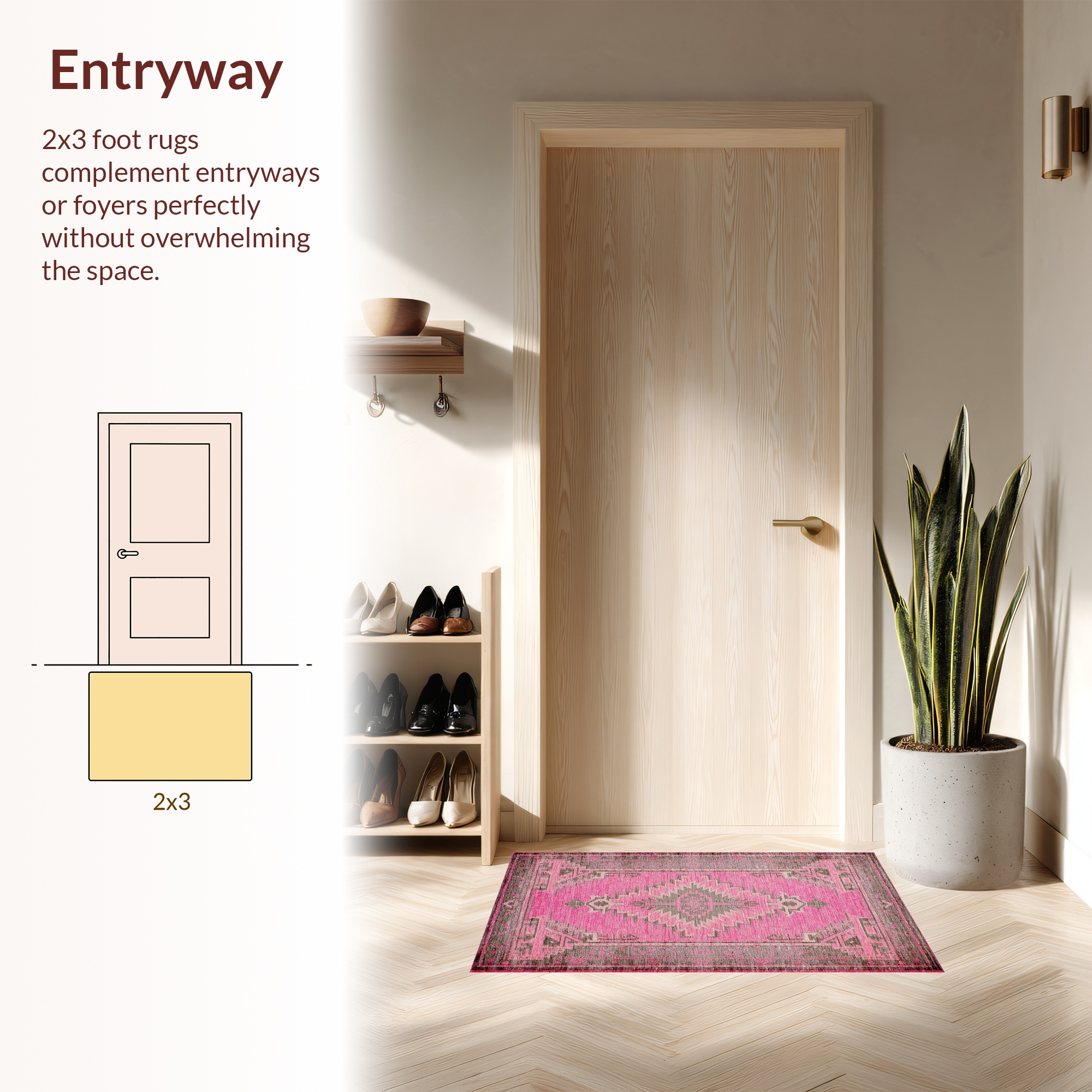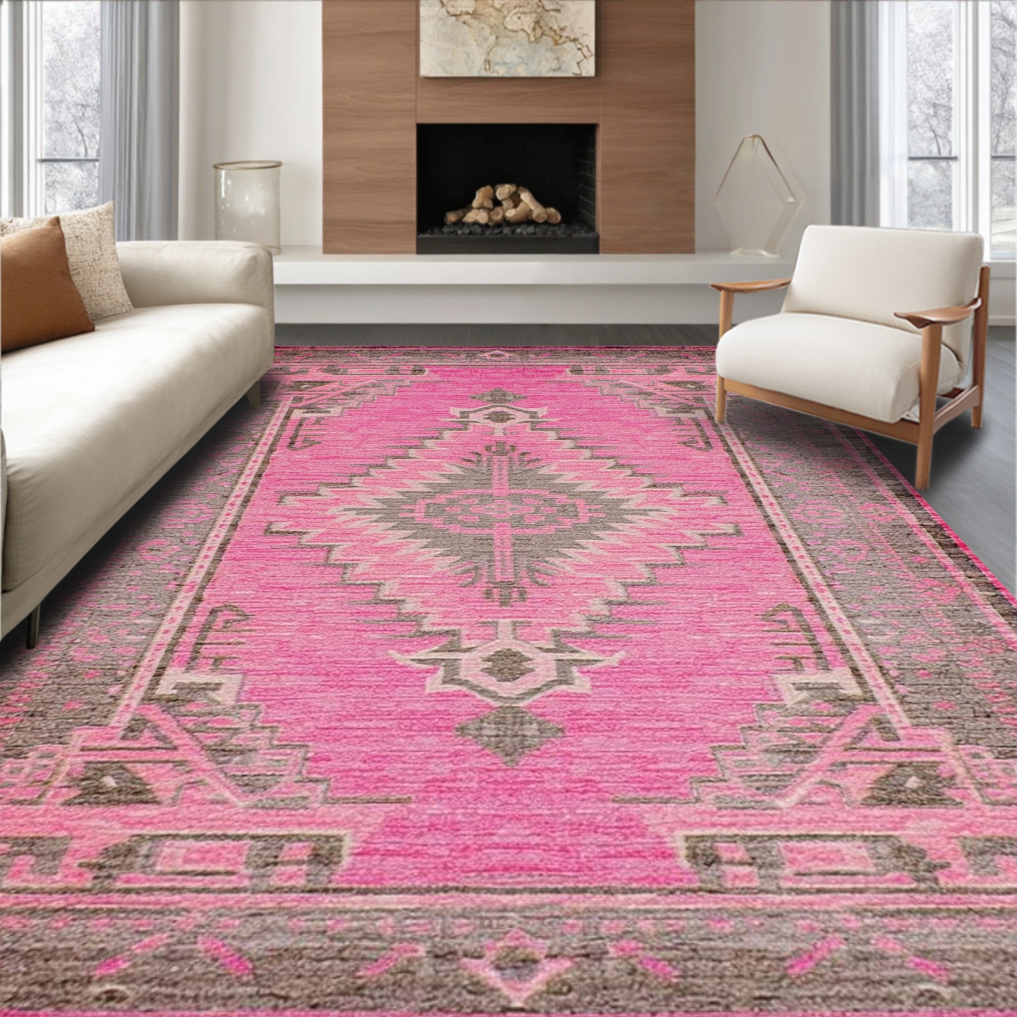 Vibrant Pink Tribal Geometric Rug