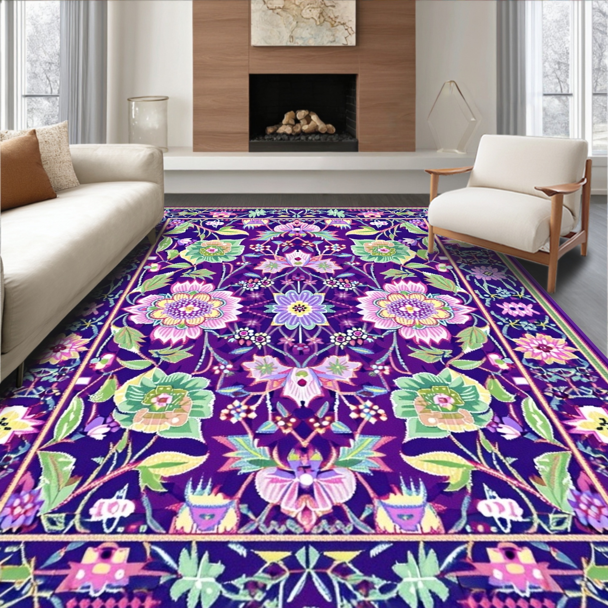 Vibrant Purple Floral Cheerful Rug