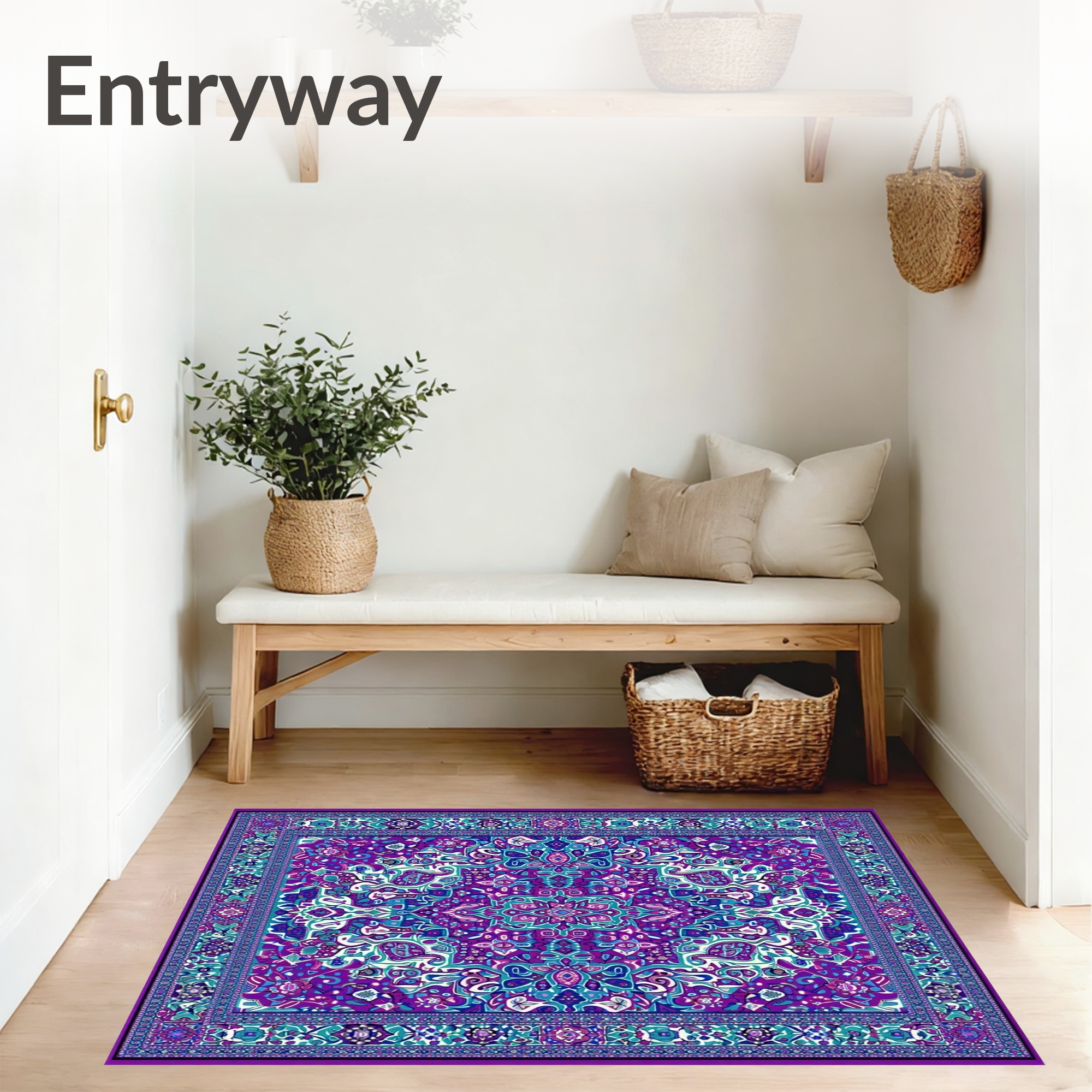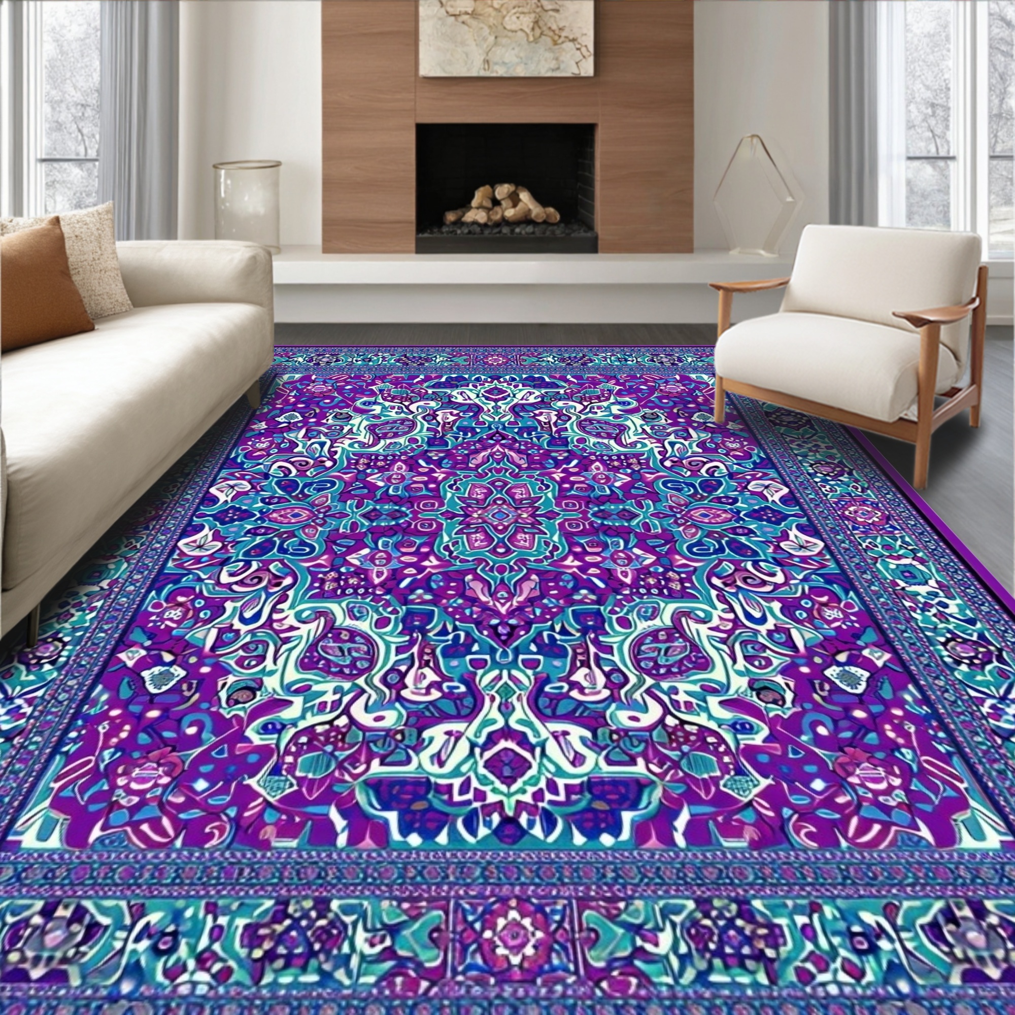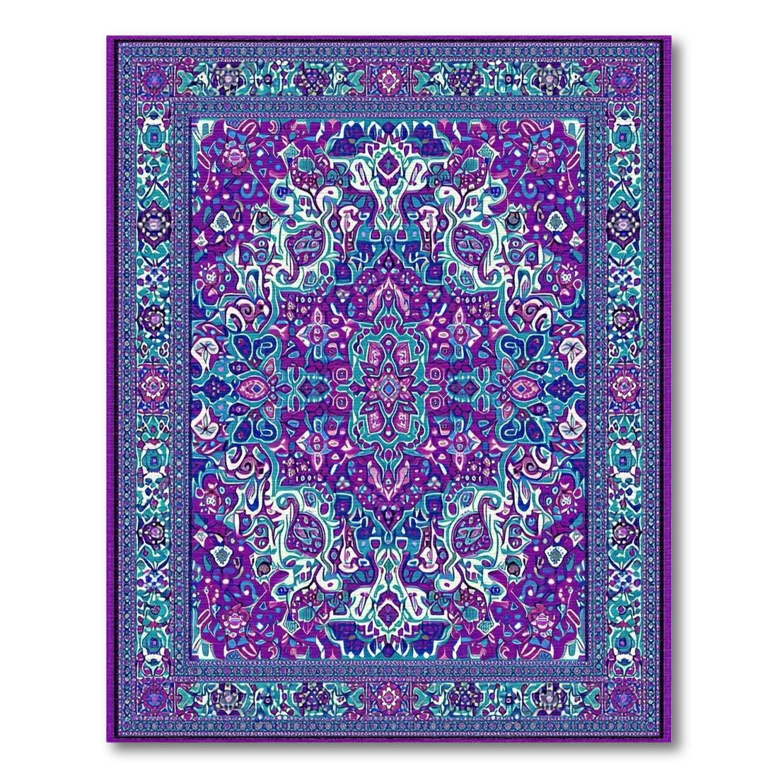 Vibrant Purple Teal Ornate Medallion Rug