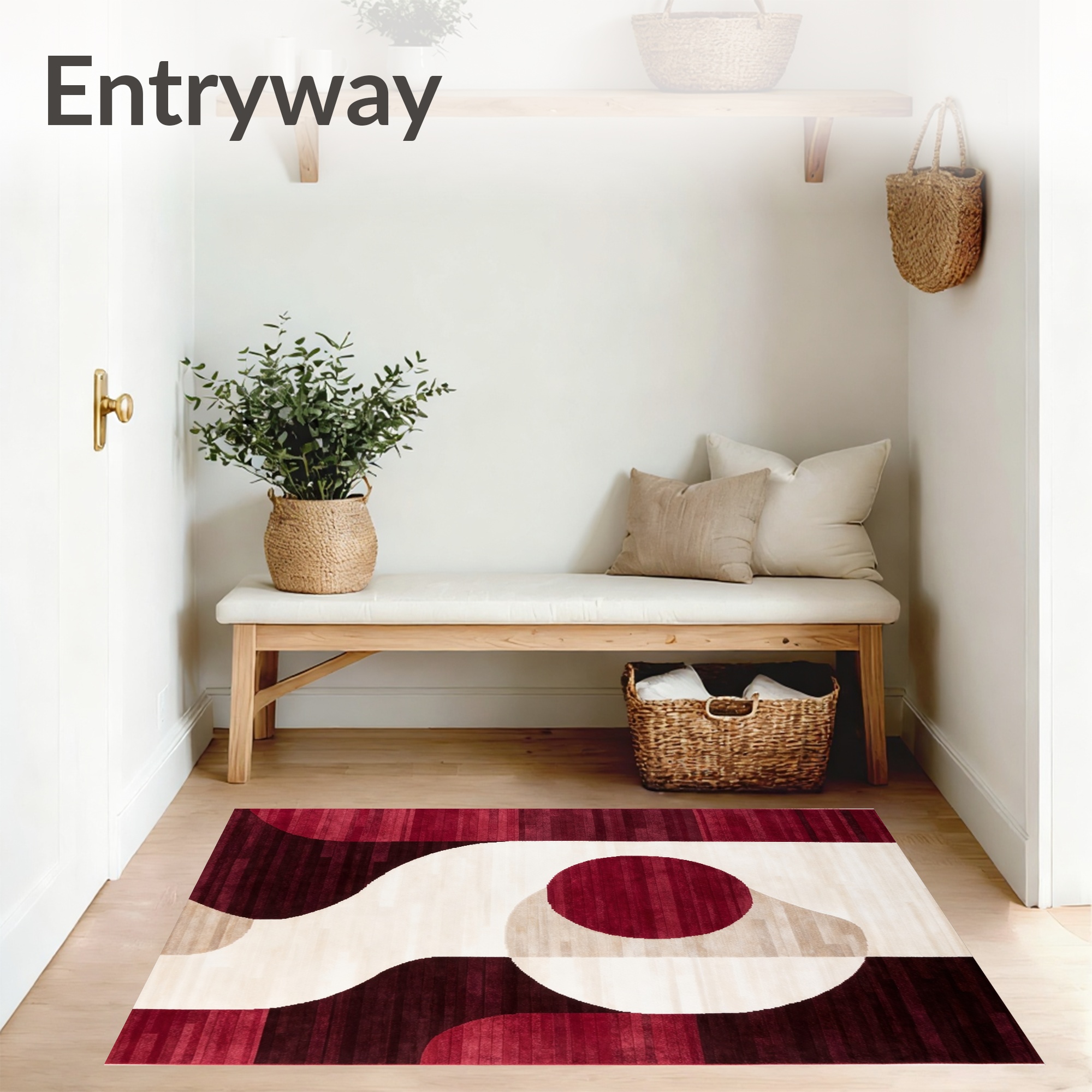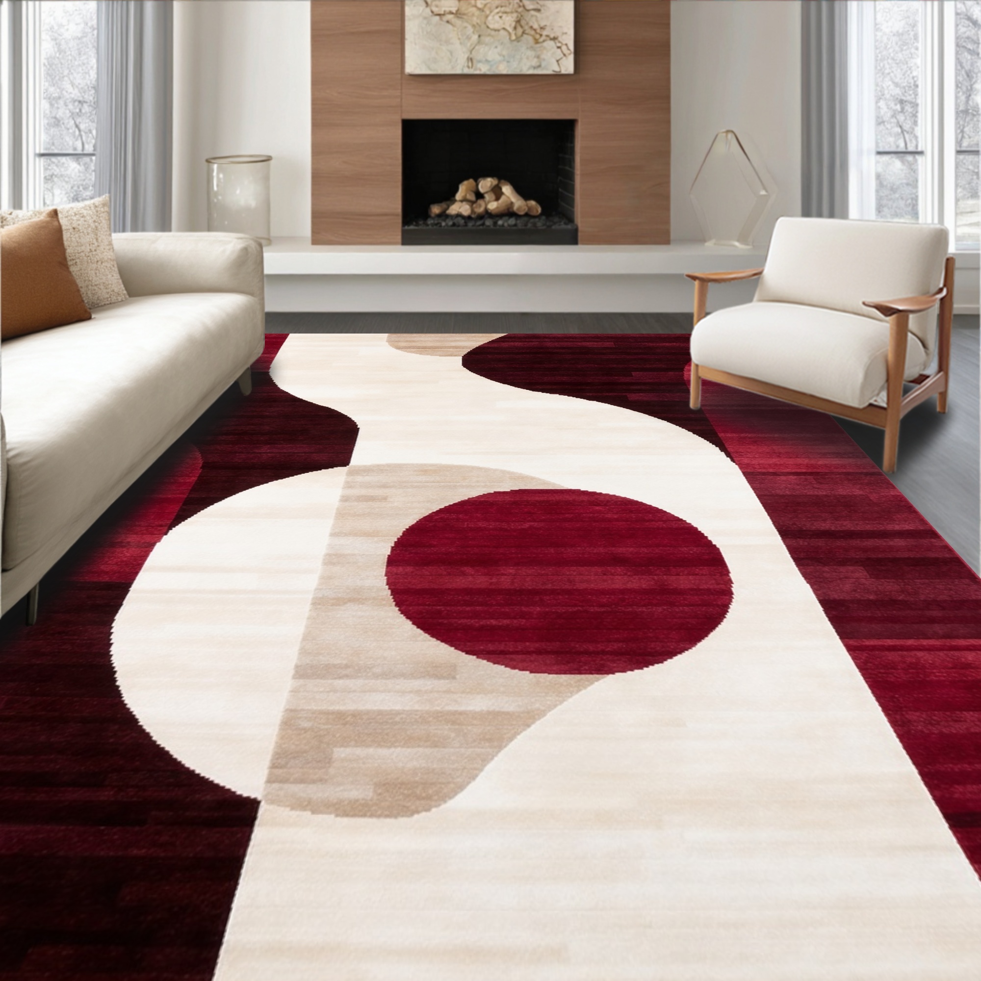 Vibrant Red Abstract Modern Rug