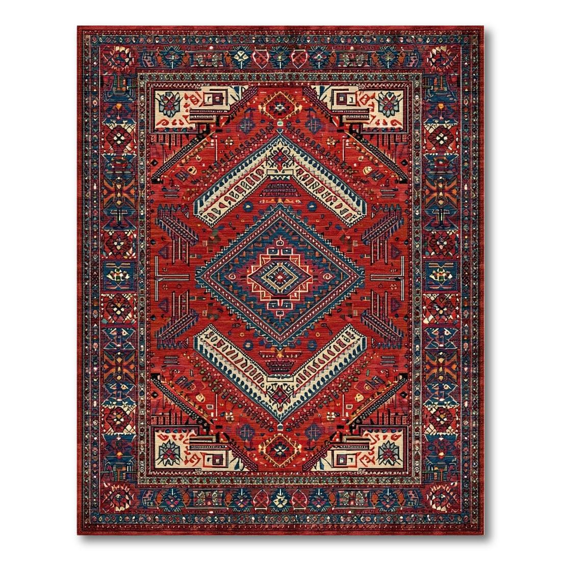 Vibrant Red Geometric Tribal Rug