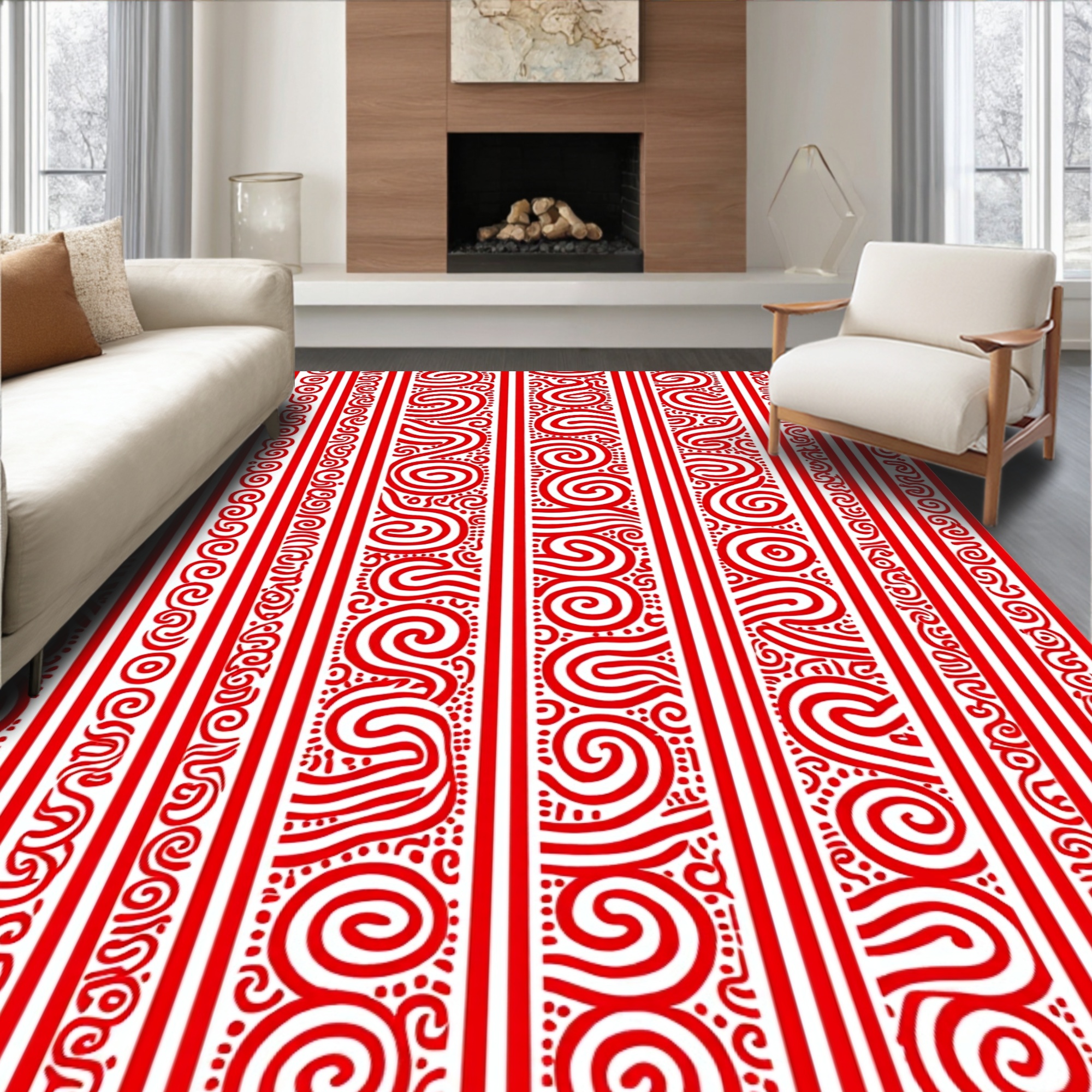 Vibrant Red Swirled Stripe Rug