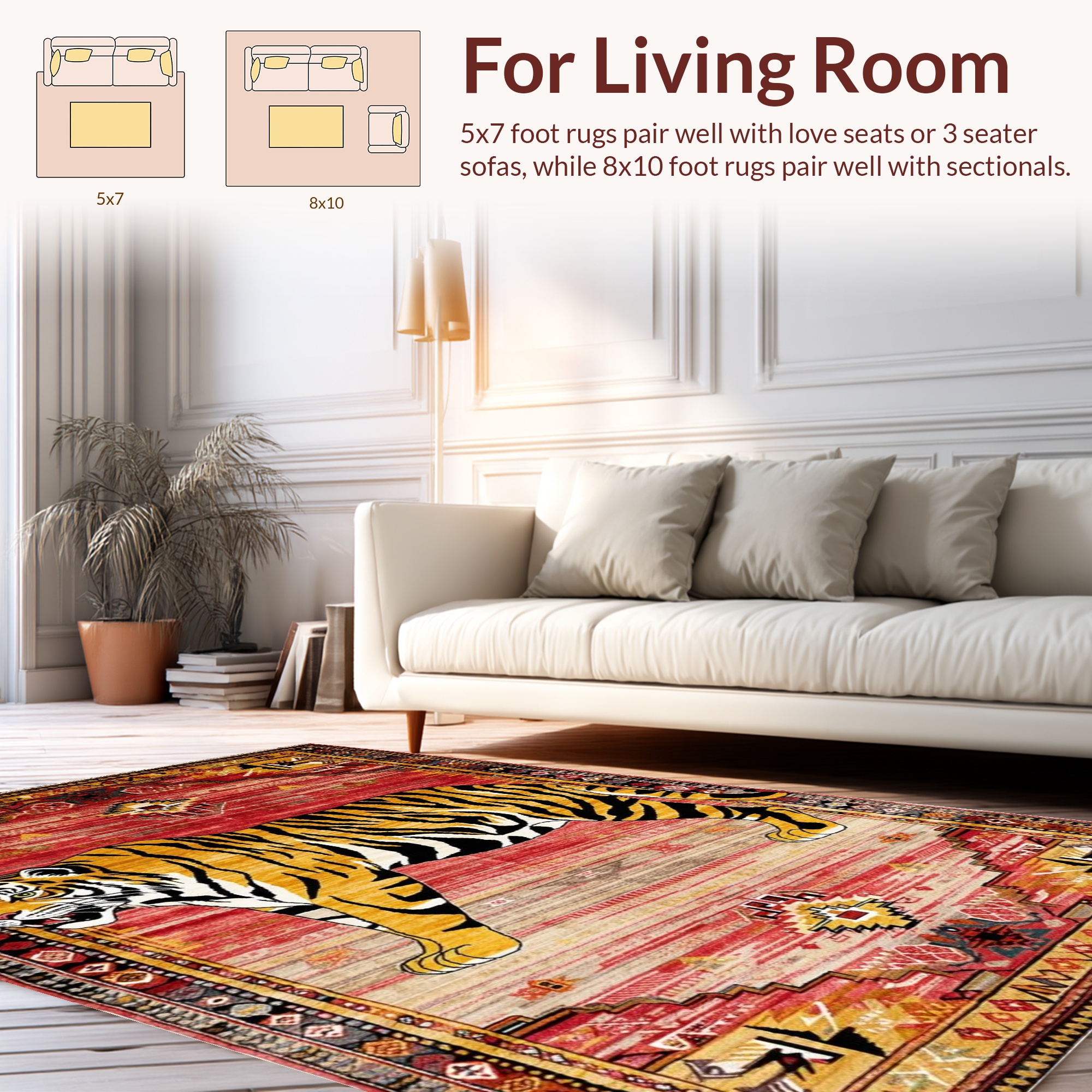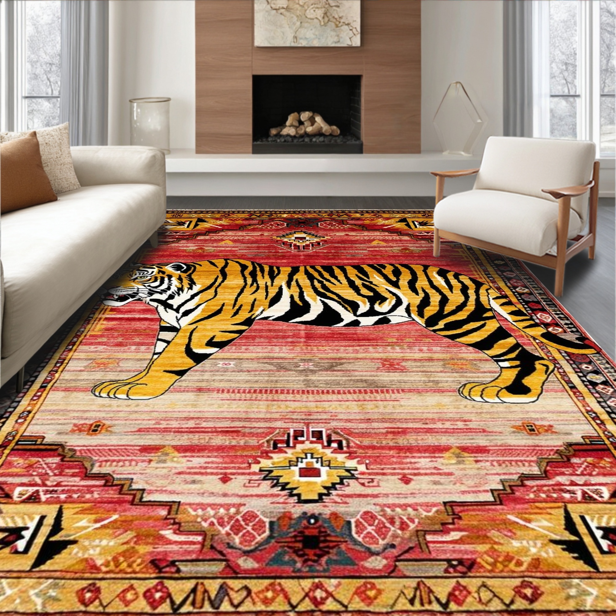 Vibrant Red Tiger Tribal Rug