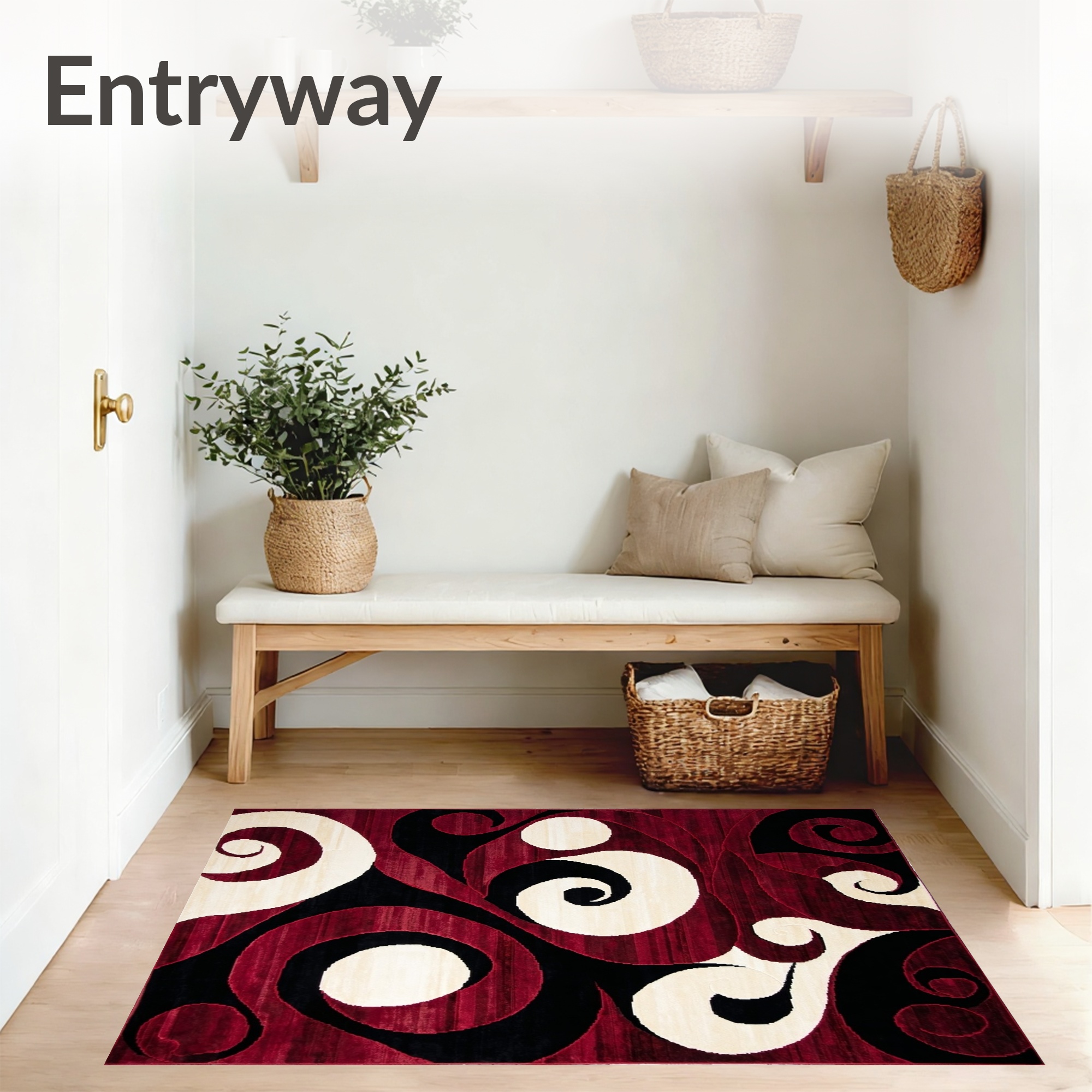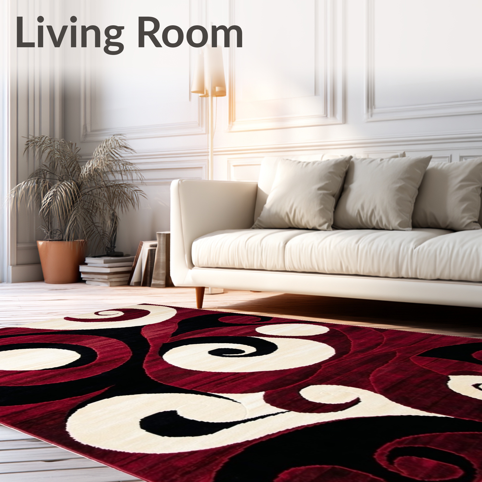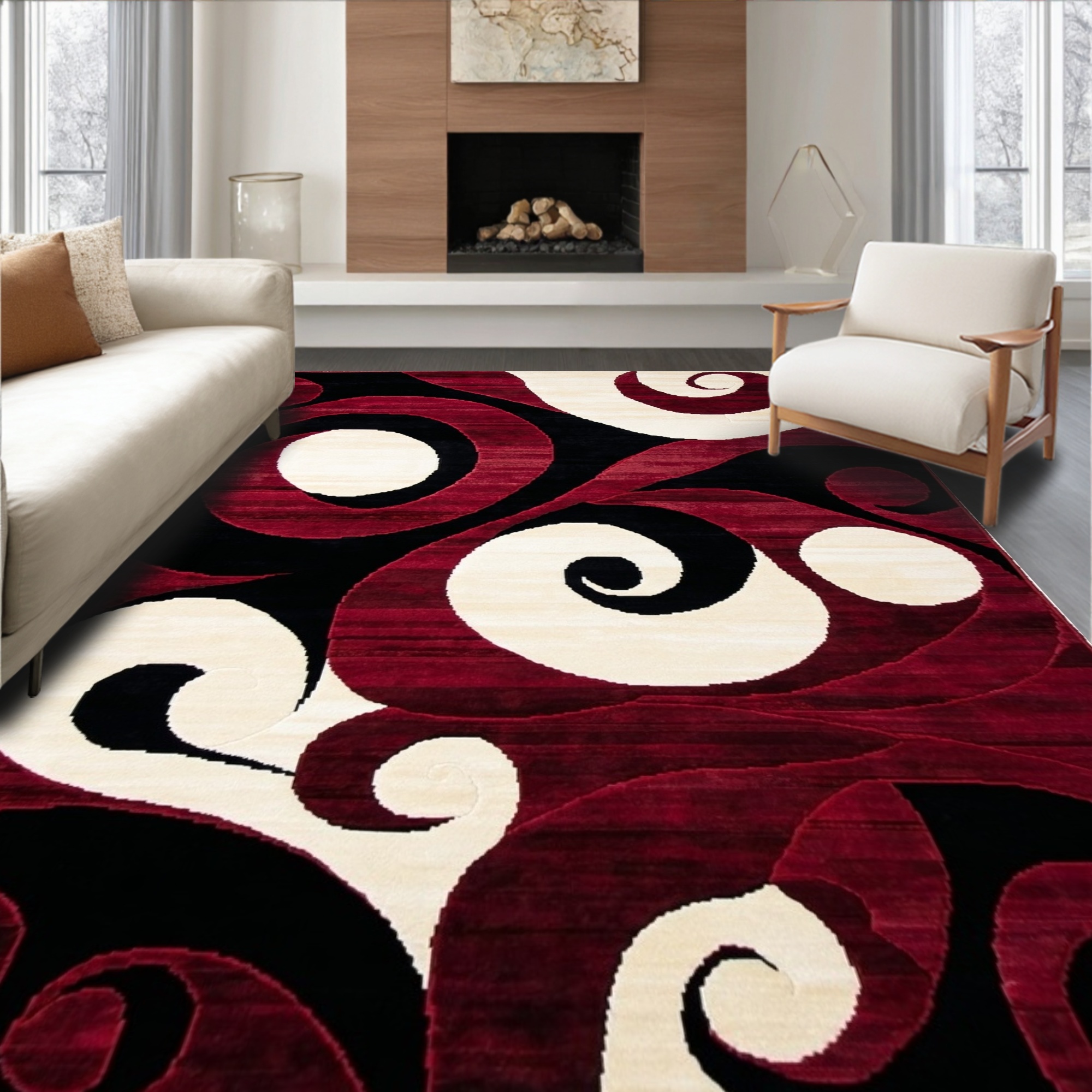Vibrant Swirling Red Black White Rug