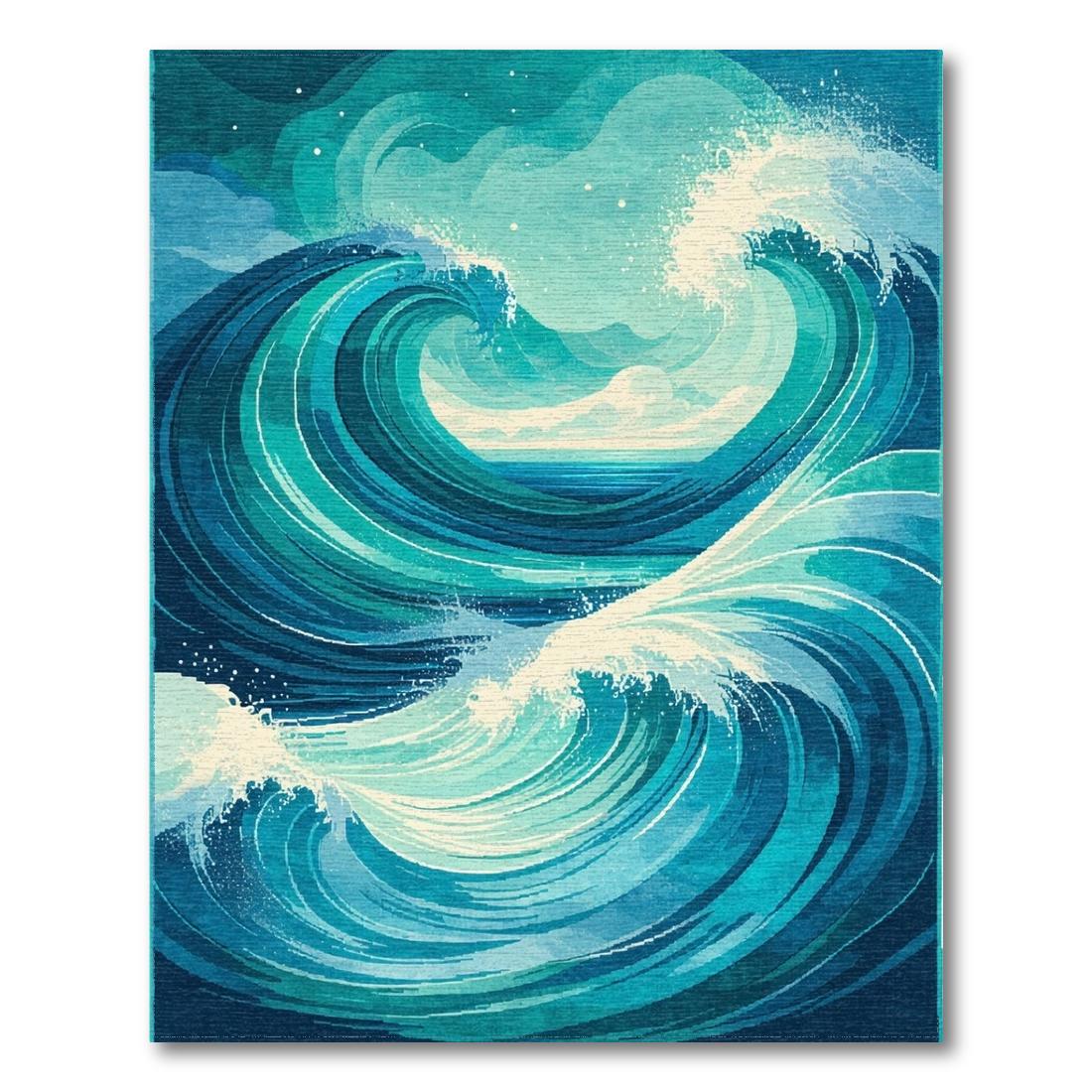 Vibrant Teal Ocean Wave Rug