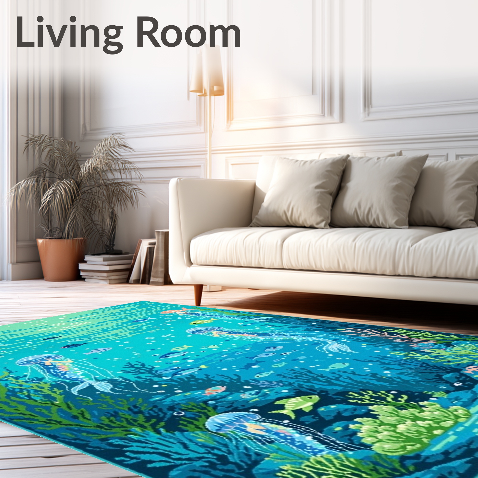 Vibrant Teal Whimsical Underwater Rug