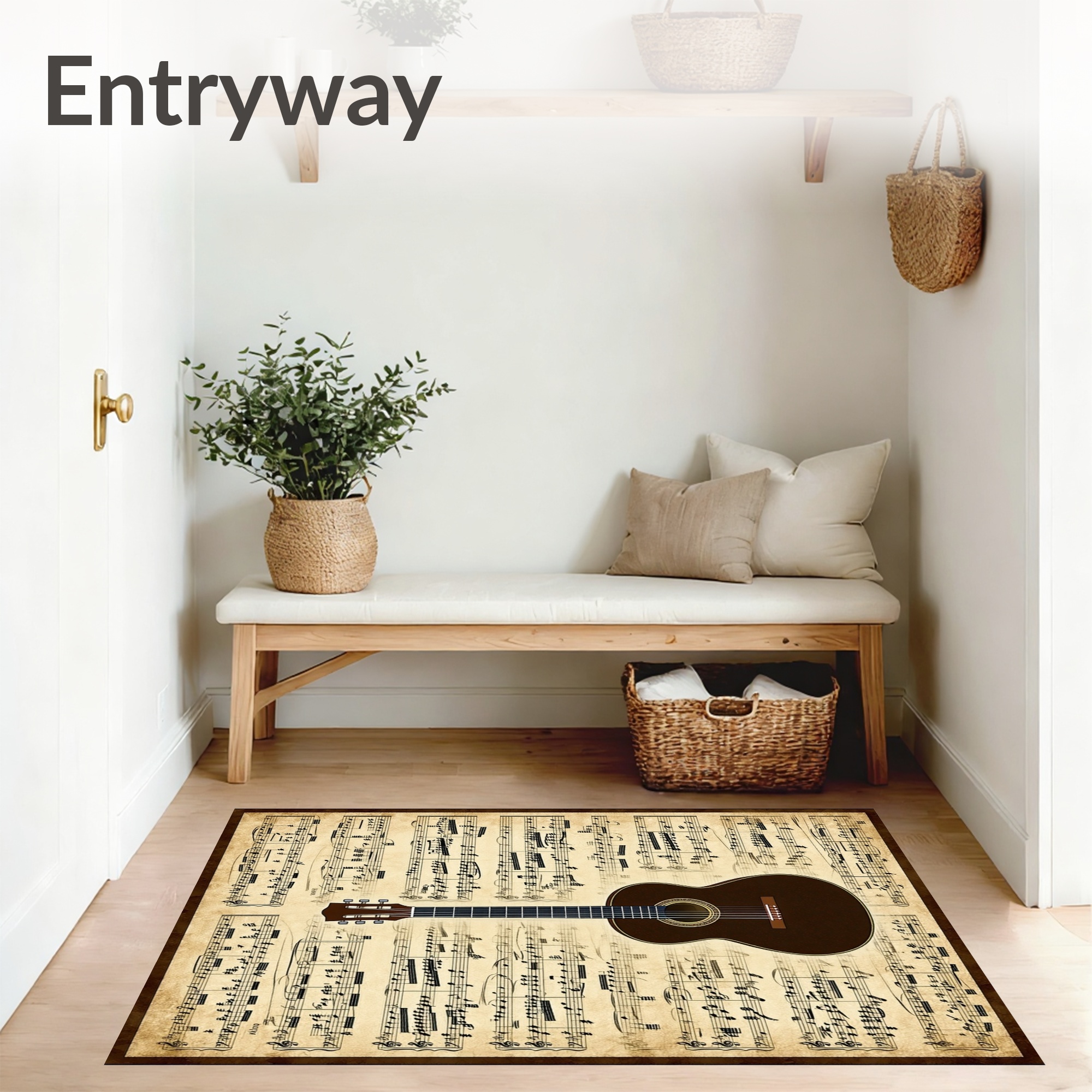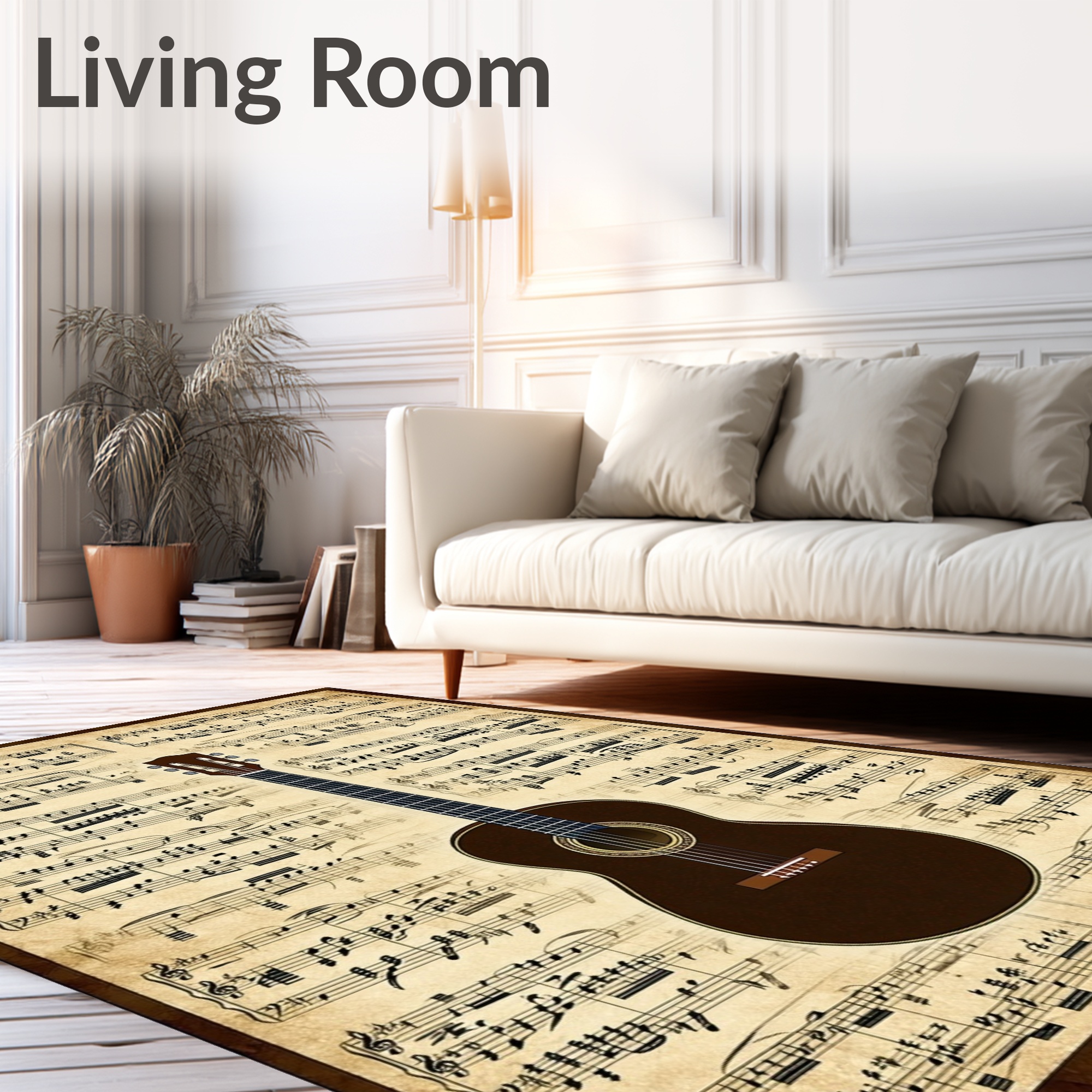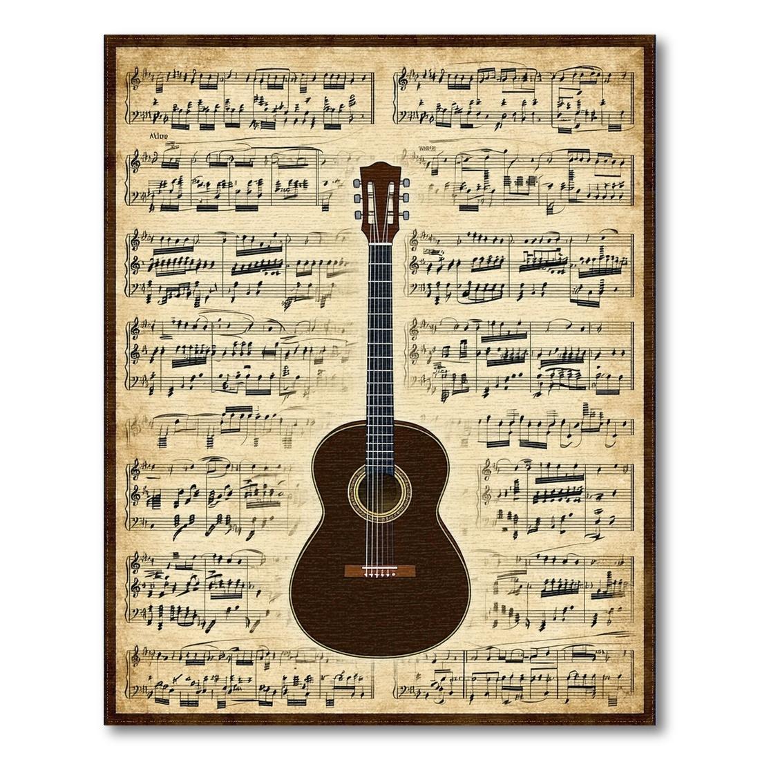 Vintage Beige Sheet Music & Guitar Nostalgic Rug