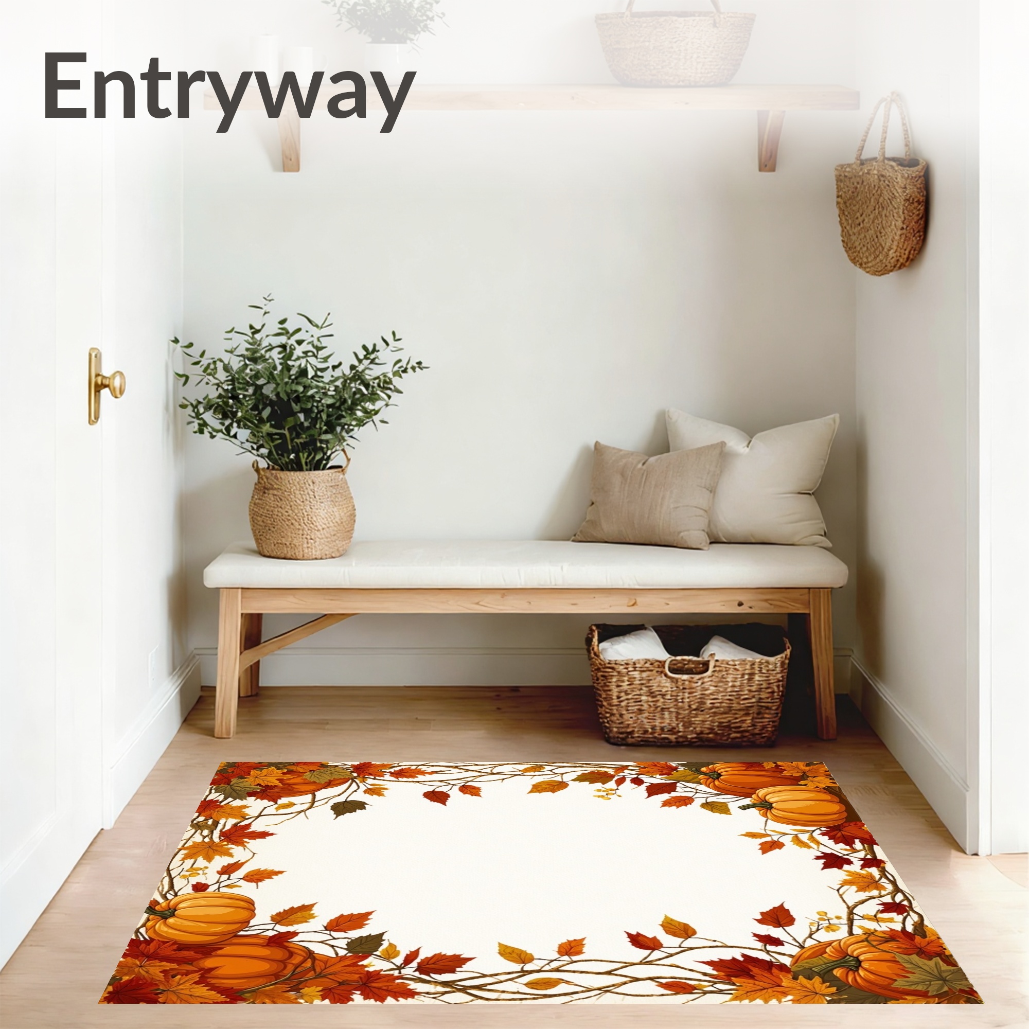 Warm Autumn Leaves & Pumpkins Border Rug