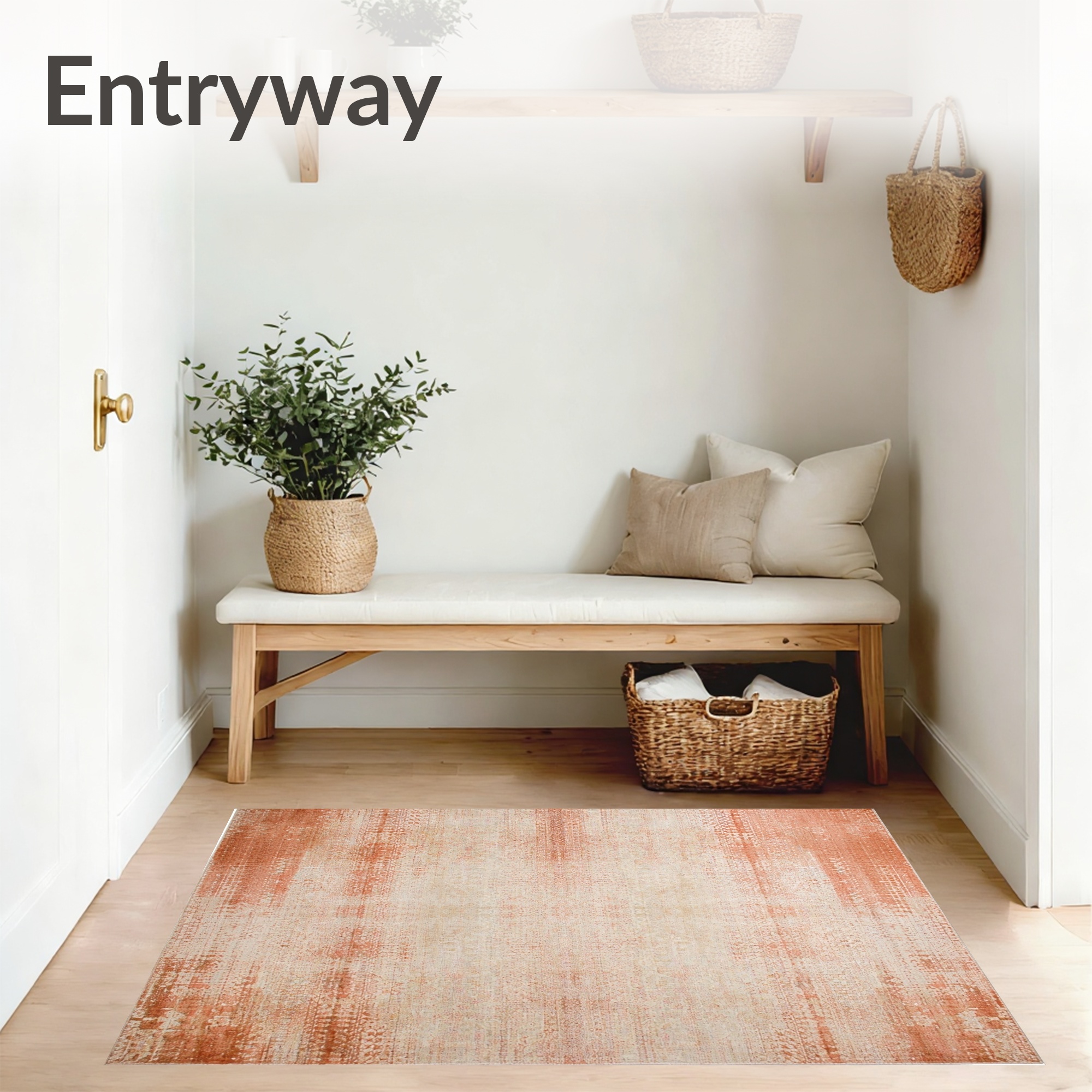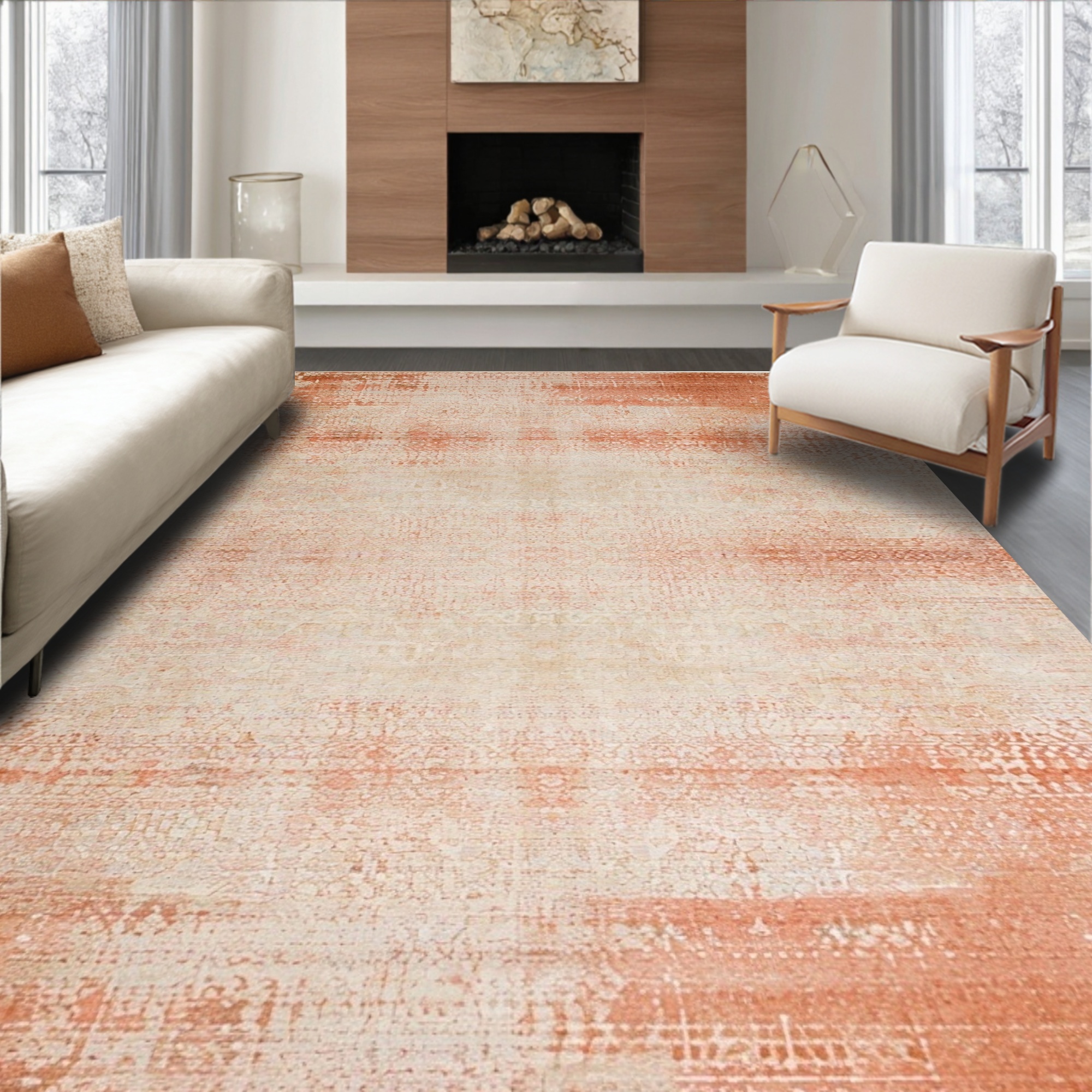 Warm Coral Distressed Abstract Rug