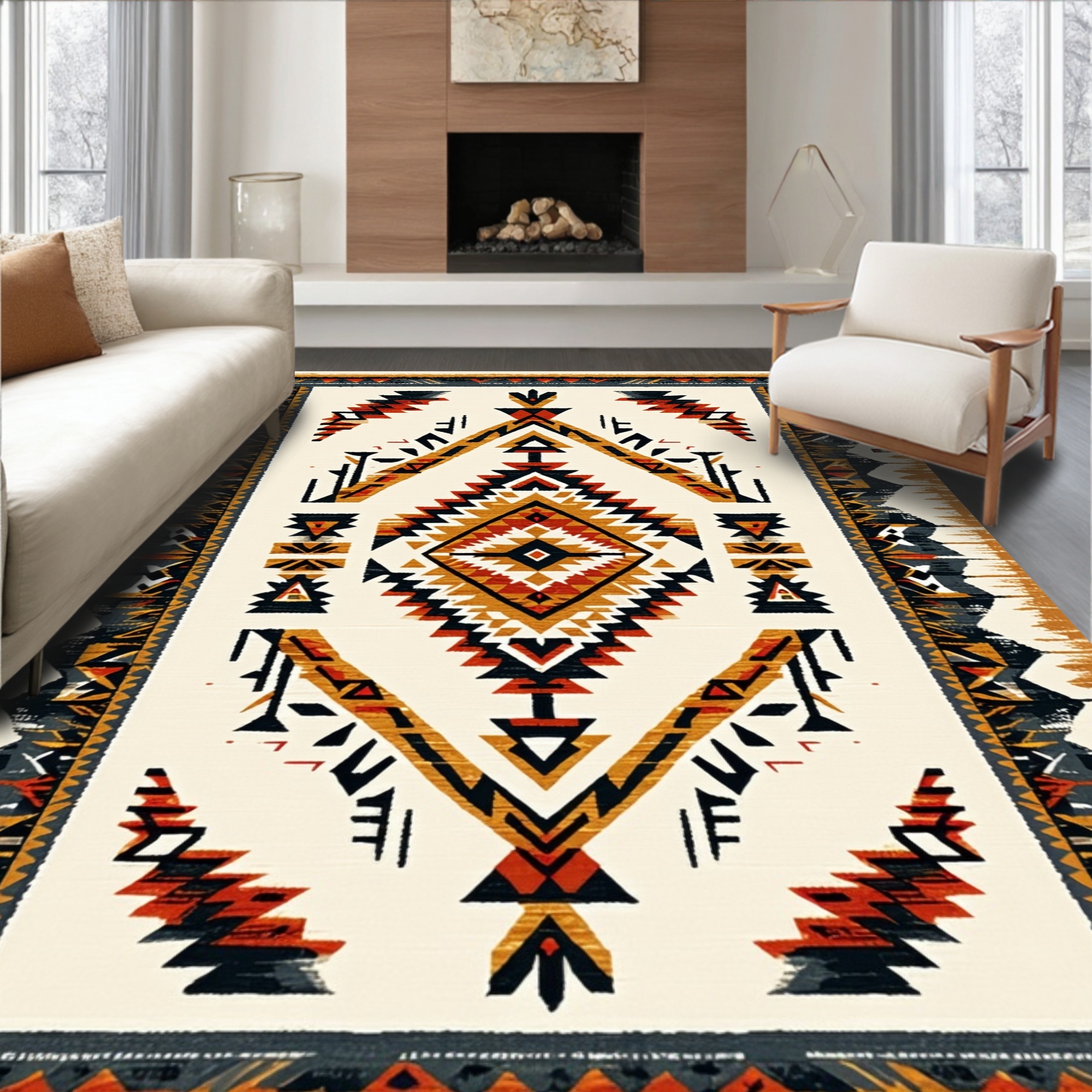 Warm Earthy Tribal Geometric Rug