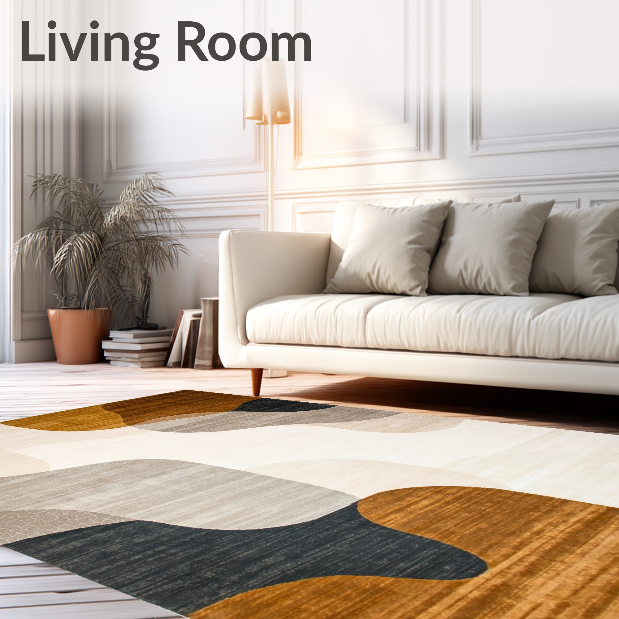 Warm Neutral Abstract Wave Modern Rug