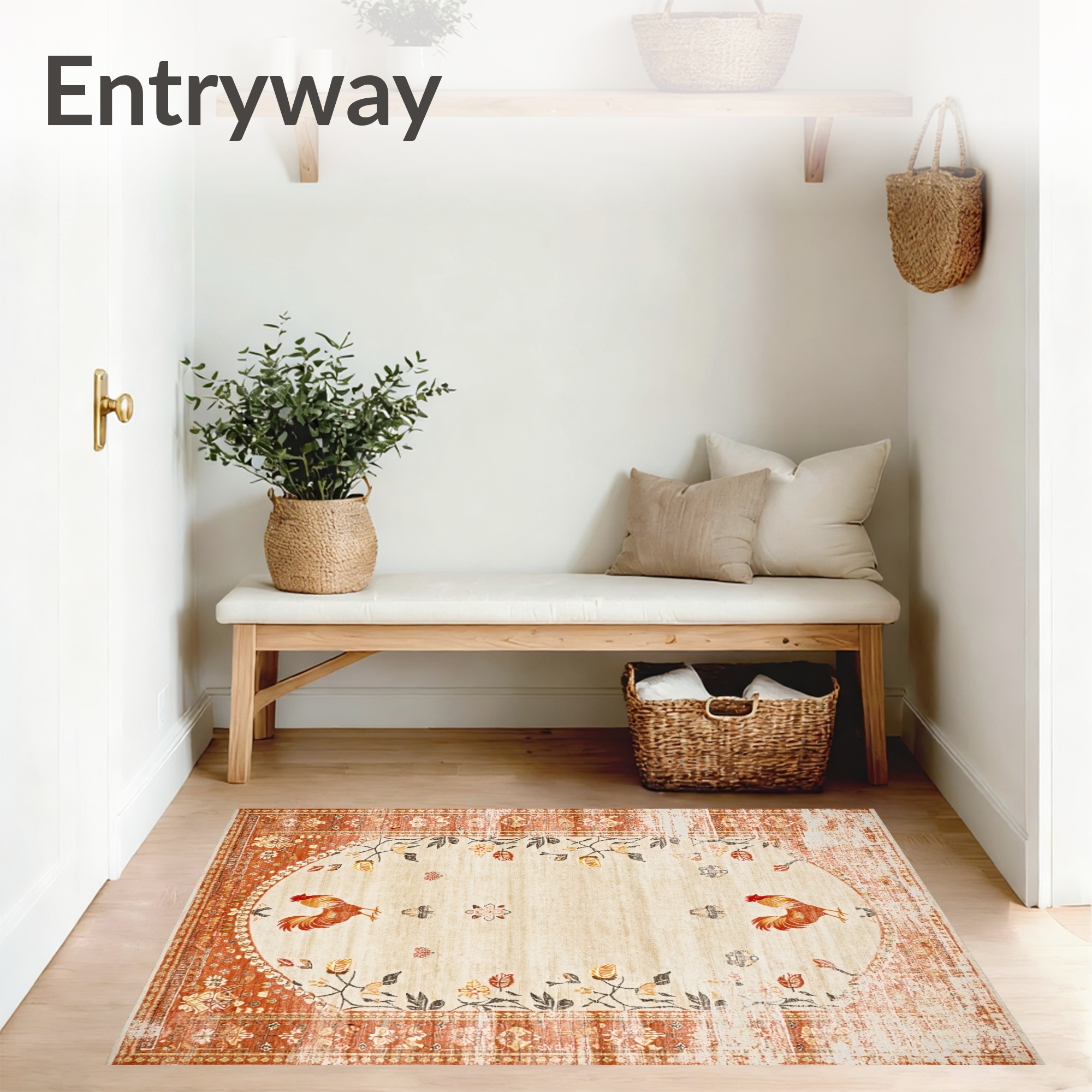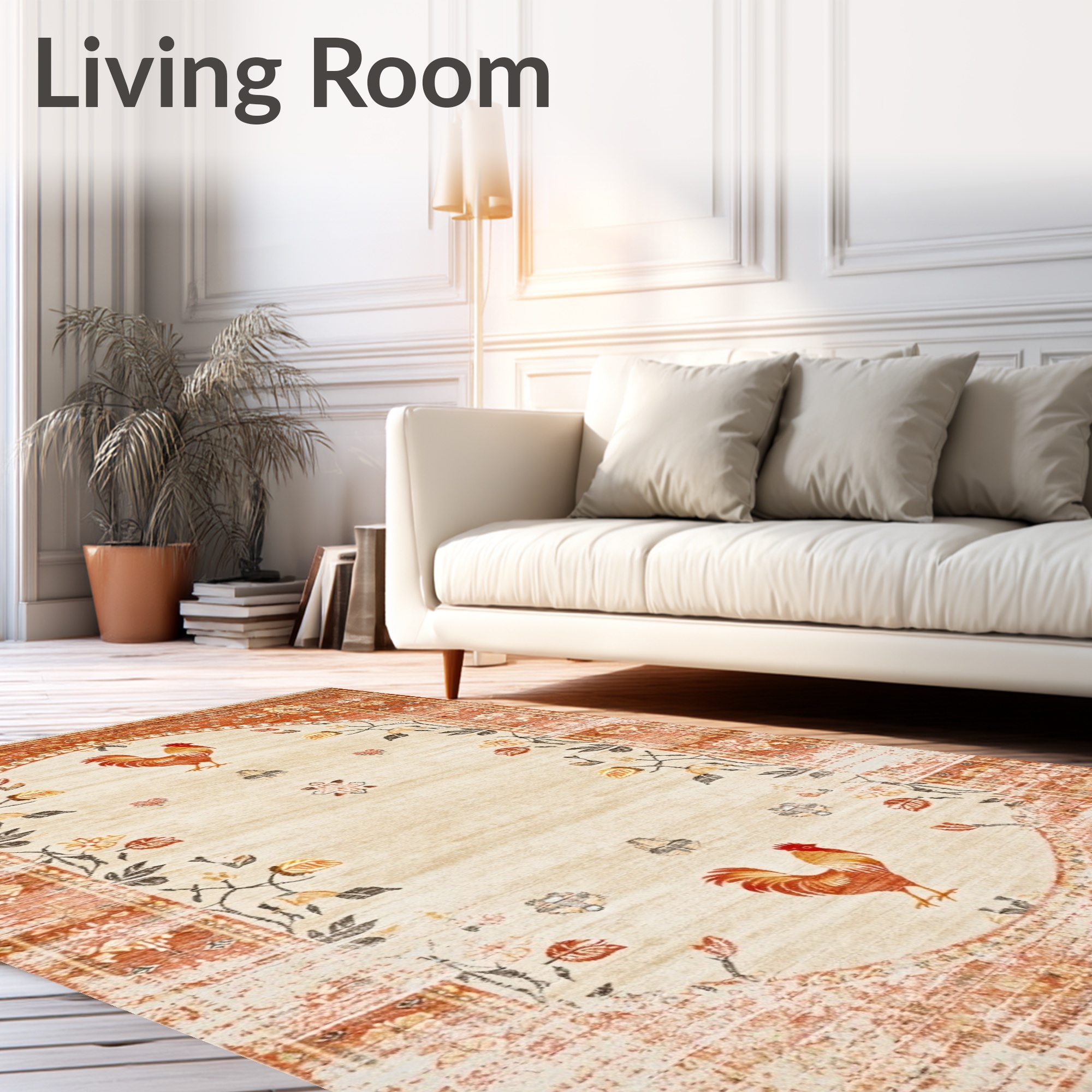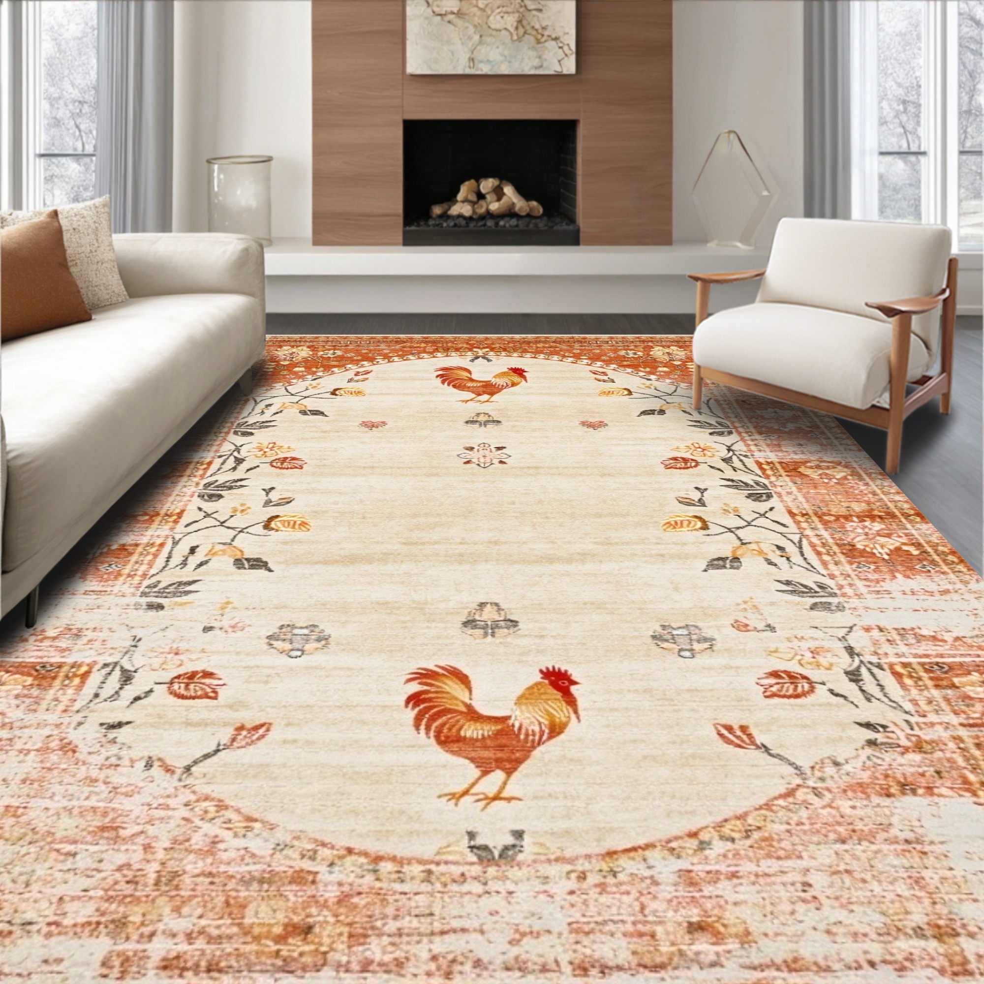 Warm Rustic Rooster Floral Rug