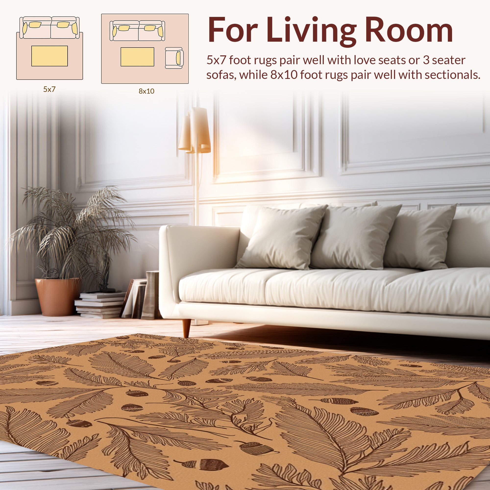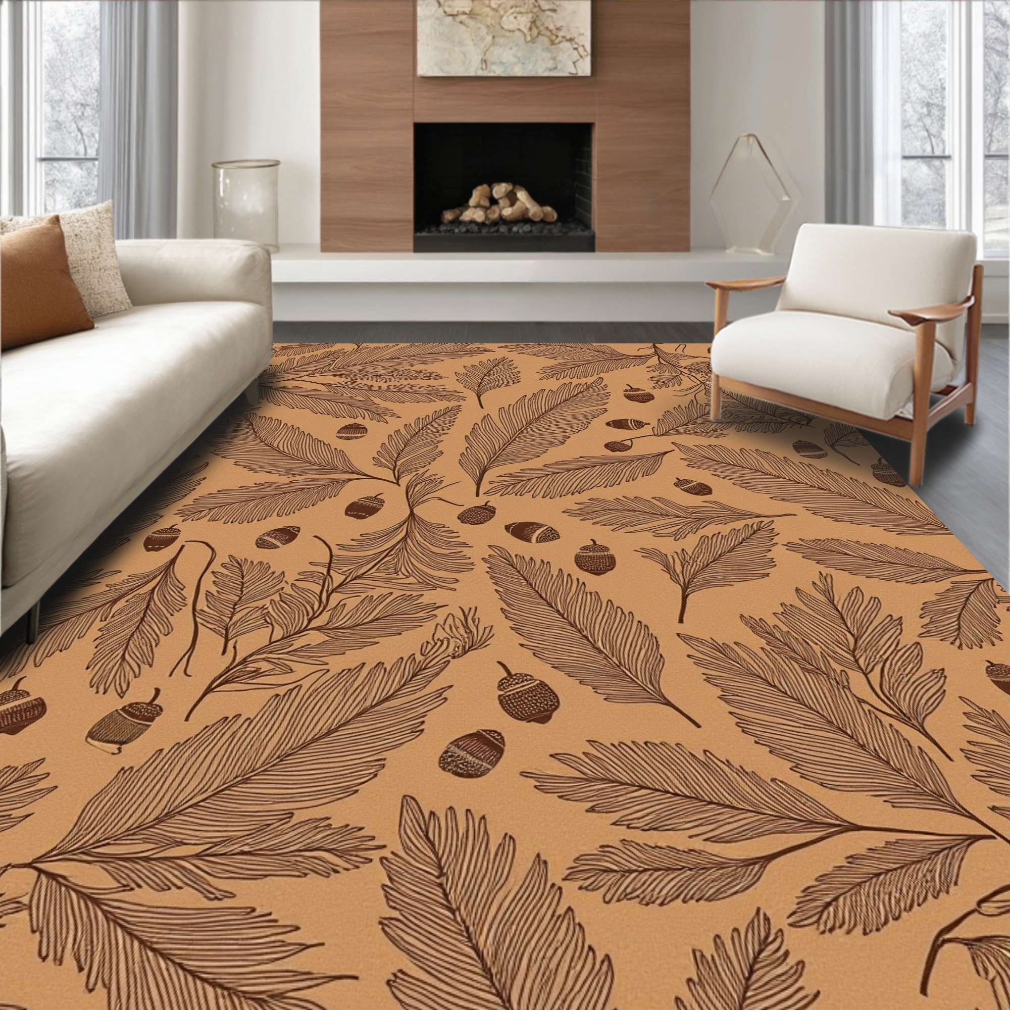 Warm Tan Leaf Acorn Rug