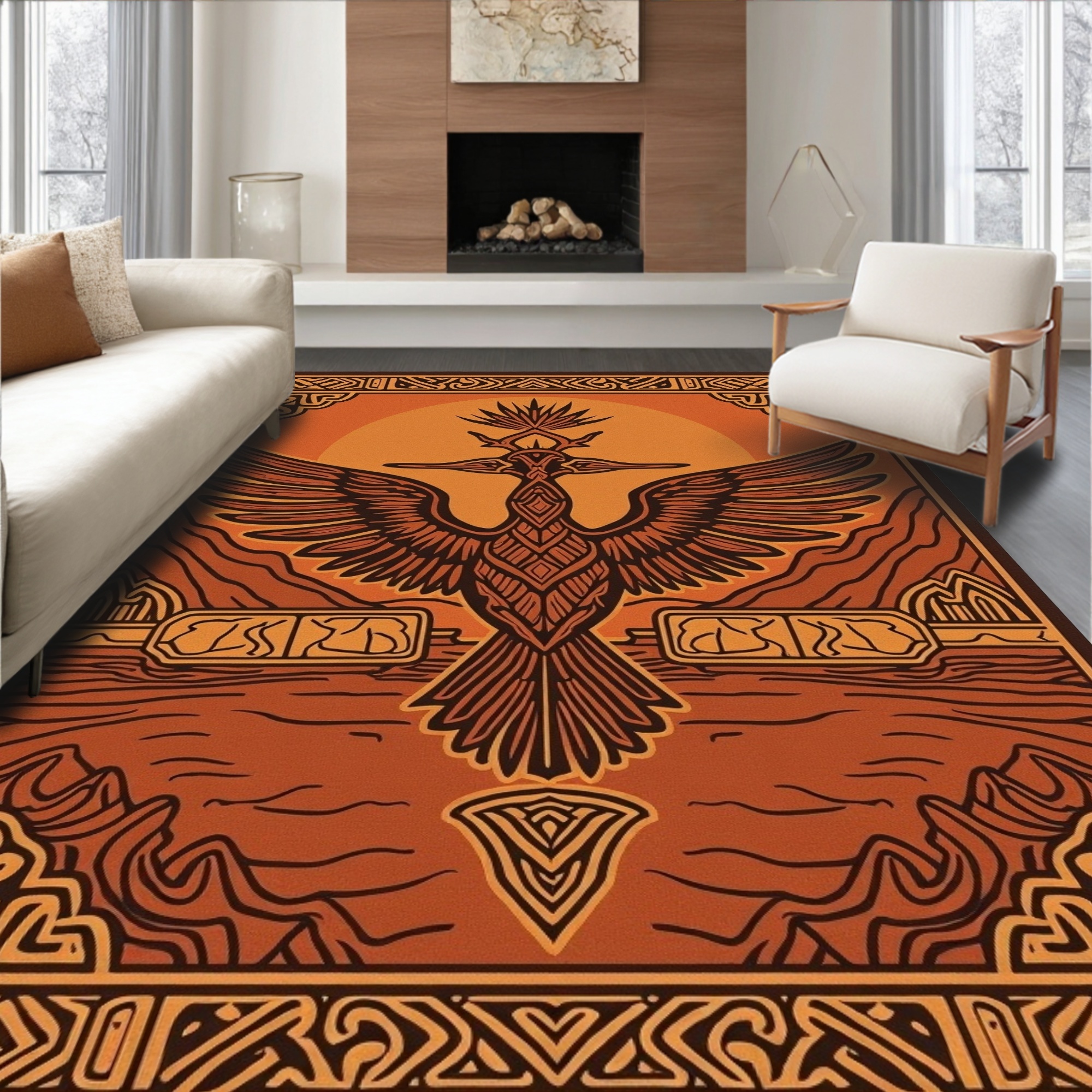 Warm Terracotta Tribal Mythical Rug